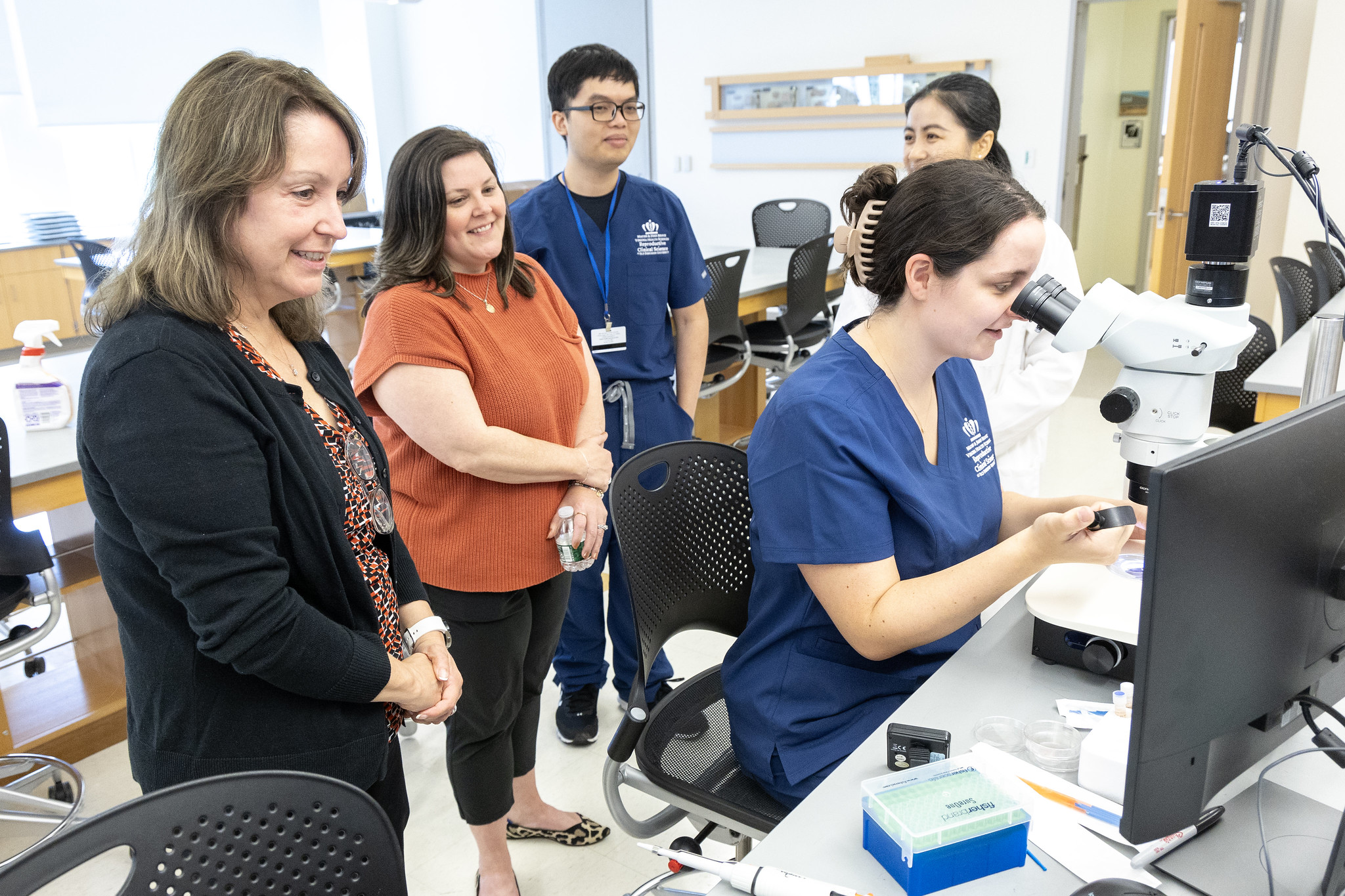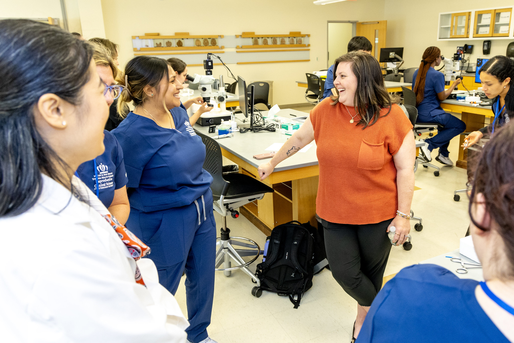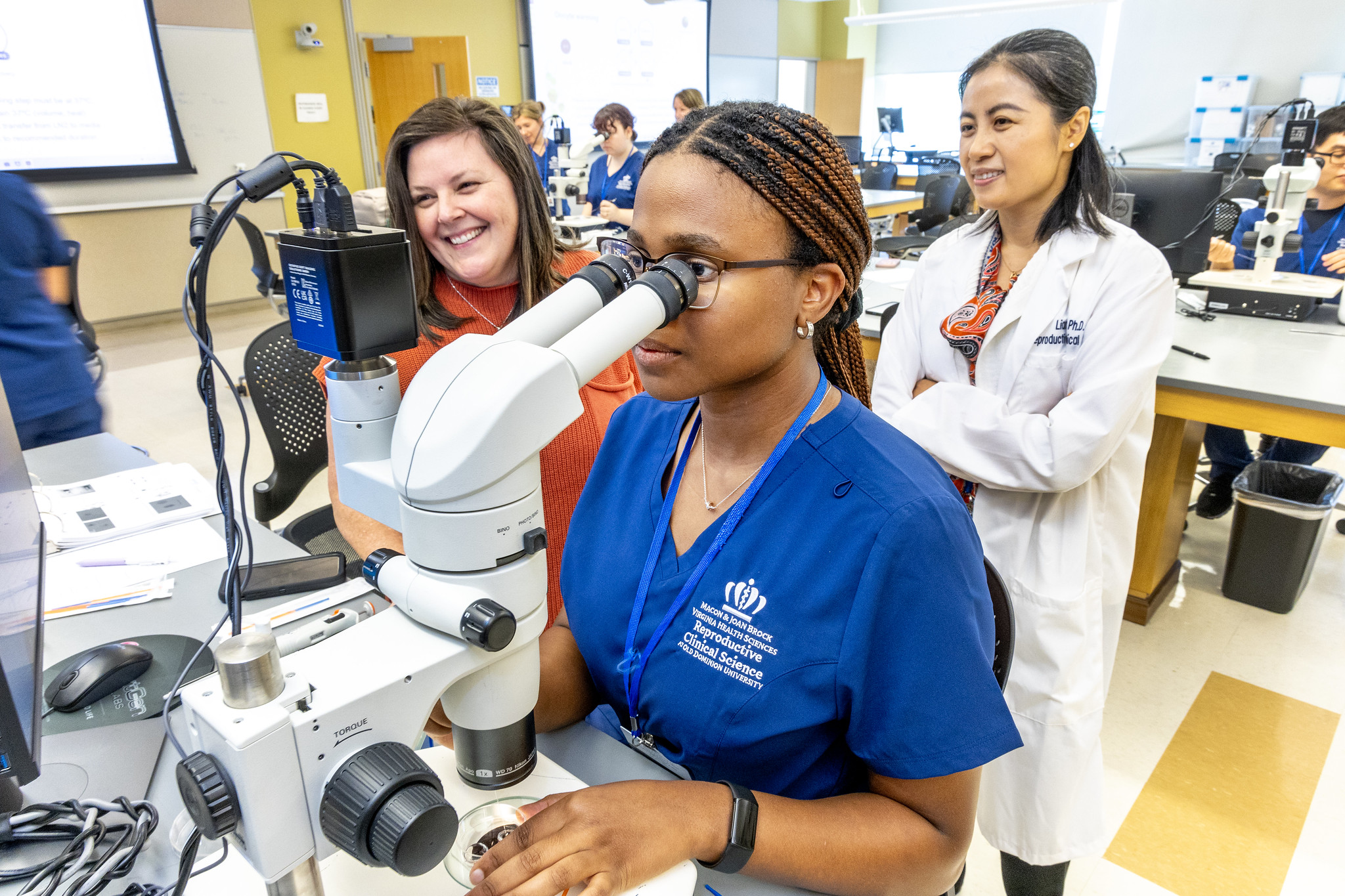 Elizabeth Carr, the first child born in America as a result of in vitro fertilization (IVF), returned to Macon & Joan Brock Virginia Health Sciences at Old Dominion University last week. Elizabeth met with students in the Reproductive Clinical Science – Embryology and Andrology program and program director Liang Yu, Ph.D. The program carries on the school’s pioneering legacy in reproductive medicine by teaching assisted-reproductive techniques to M.S. and Ph.D. students from around the world. During her visit, Carr also received an award from Dean C. Donald Combs, Ph.D. in recognition of her work as an ambassador for IVF and reproductive clinical science education.