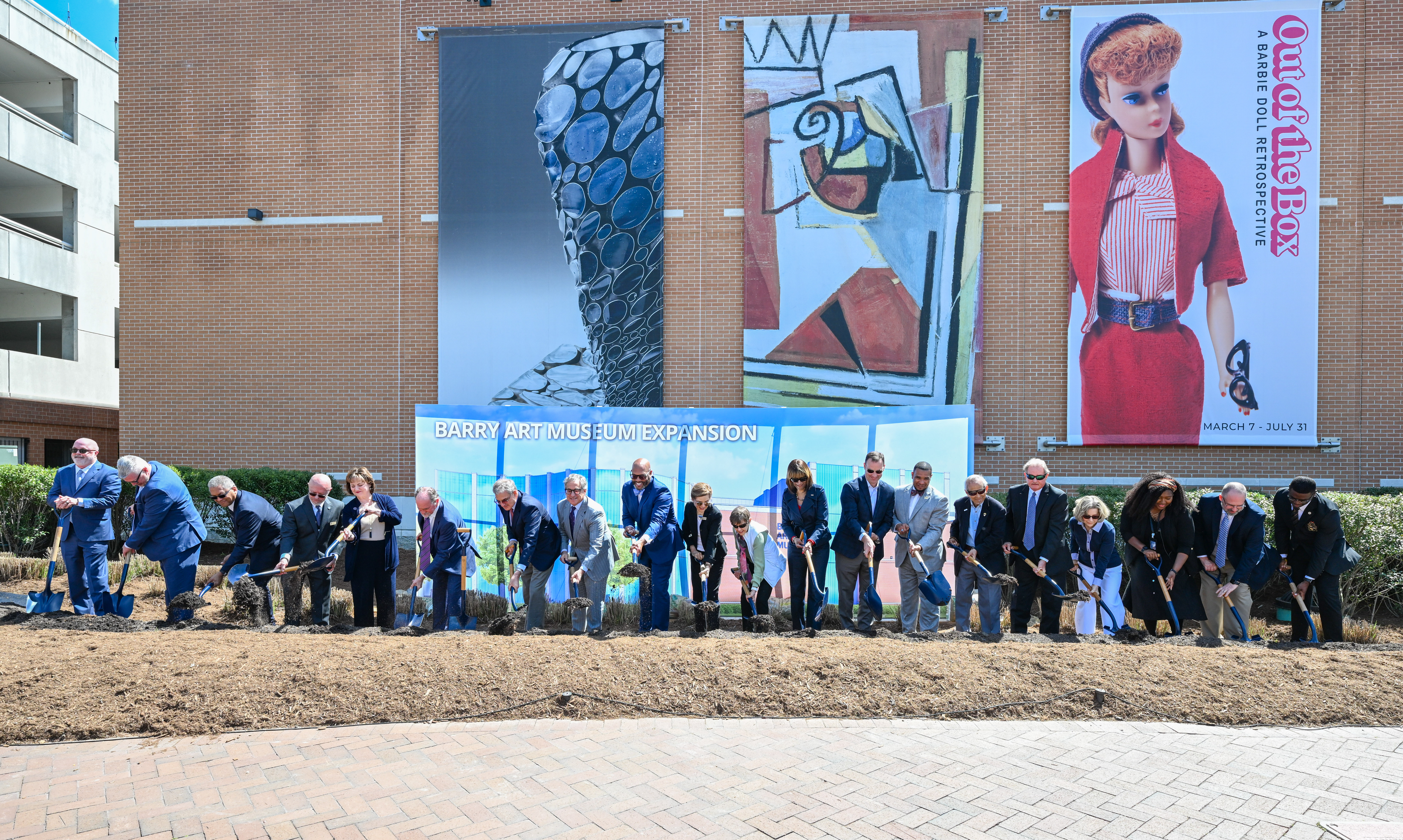 The first groundbreaking, held on April 16, was for the Barry Art Museum expansion, a $25 million project that will add a 25,200-square-foot, three-story wing. The expansion will include a multiuse event space, community gallery, media video gallery, educational laboratory and expanded art storage. The project was funded by museum co-founders Carolyn and Dick Barry, Joan Brock and the family of Leah and Richard Waitzer. Funding for this project will also establish an endowment for operations.