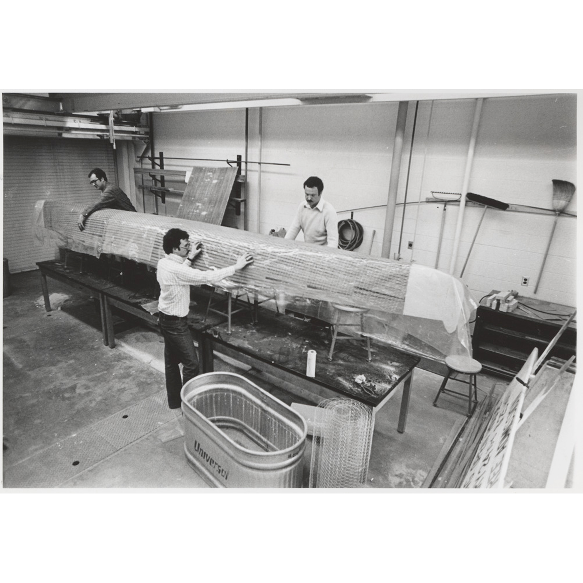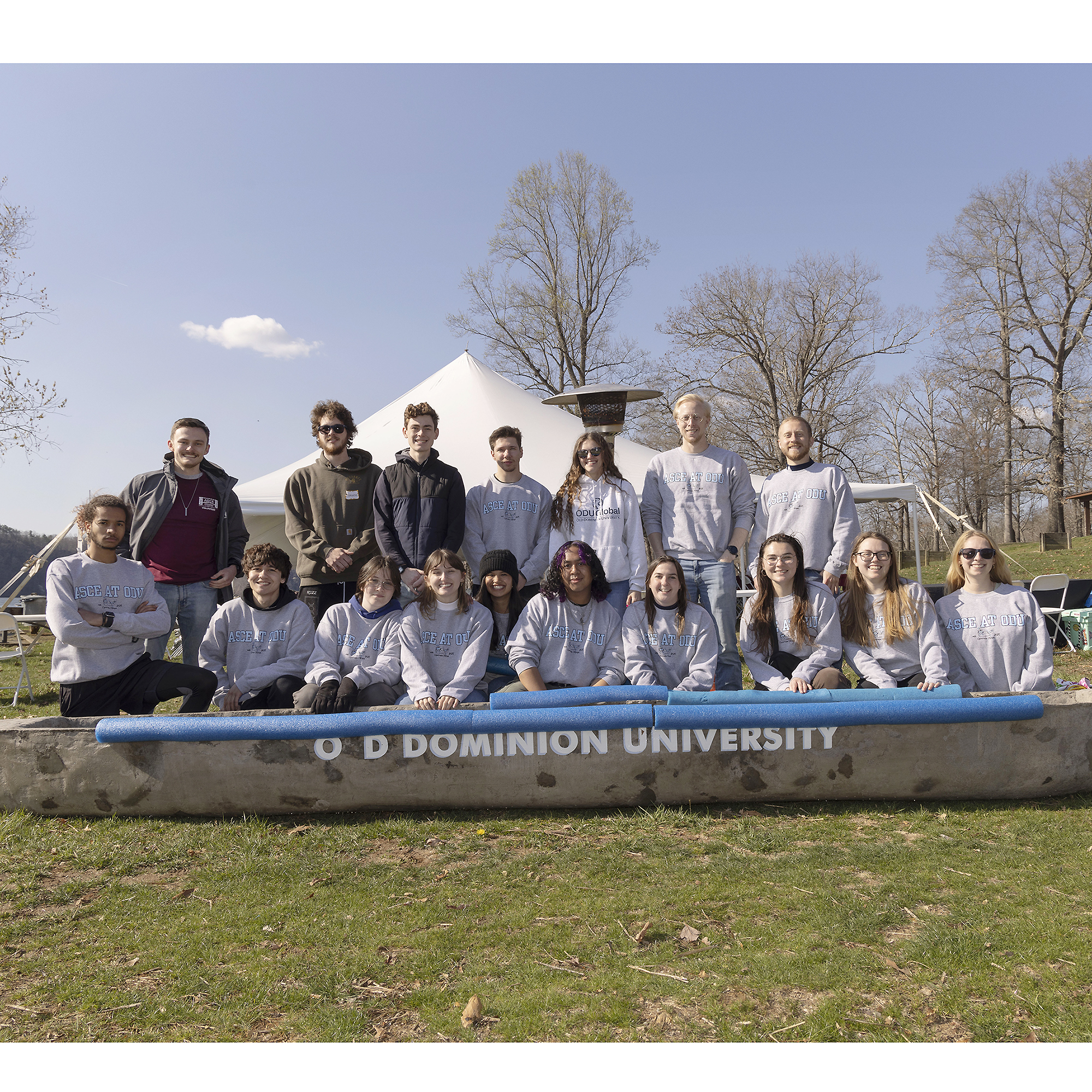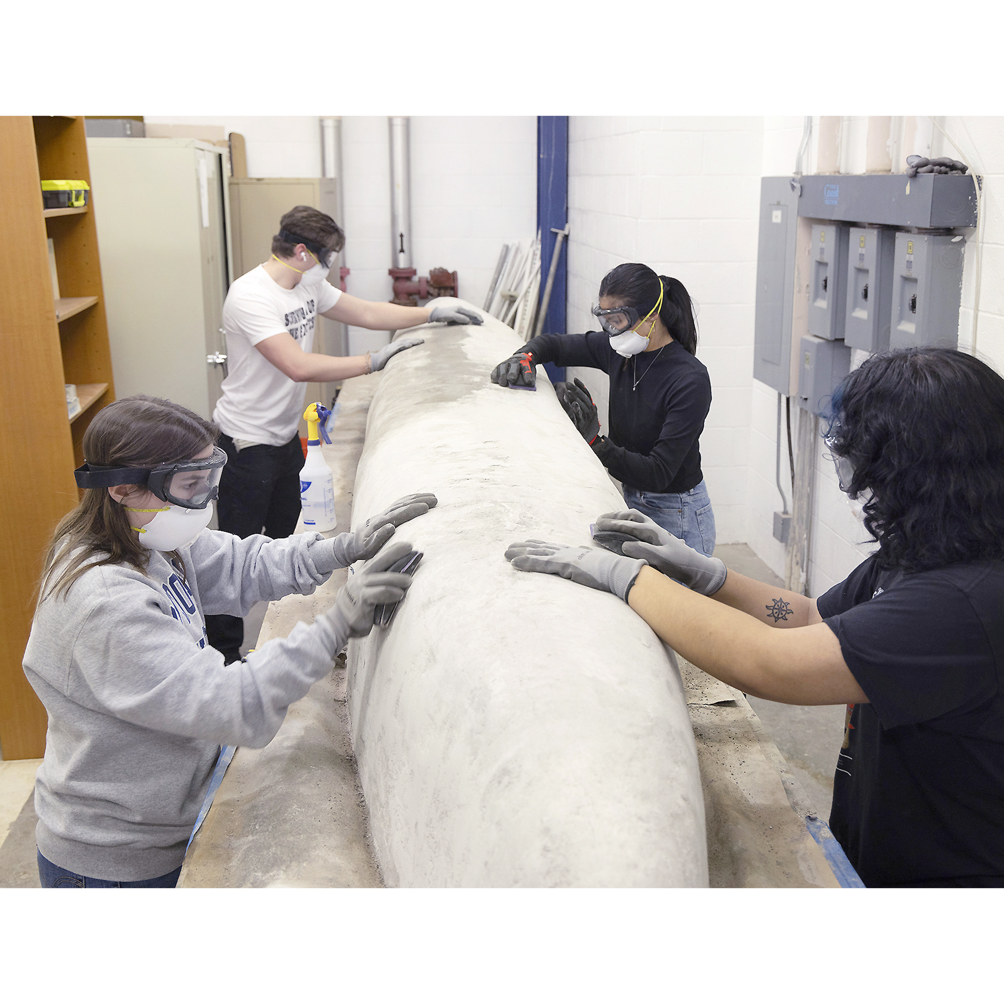 Each year, ODU’s American Society of Civil Engineers (ASCE) Concrete Canoe Team designs and builds a 20-foot canoe made entirely of concrete. After pouring and molding the structure, students refine and sand the hull until it is ready for competition.