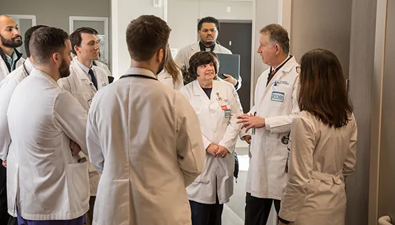 Our community-based Graduate Medical Education is one of the nation's few training programs in which all residencies are integrated among a number of hospitals and community clinic settings, instead of one fixed setting such as a university hospital. Our residents work at 14 teaching affiliate hospitals, staffing hospitals 24 hours a day, implementing new treatment methods and conducting research.