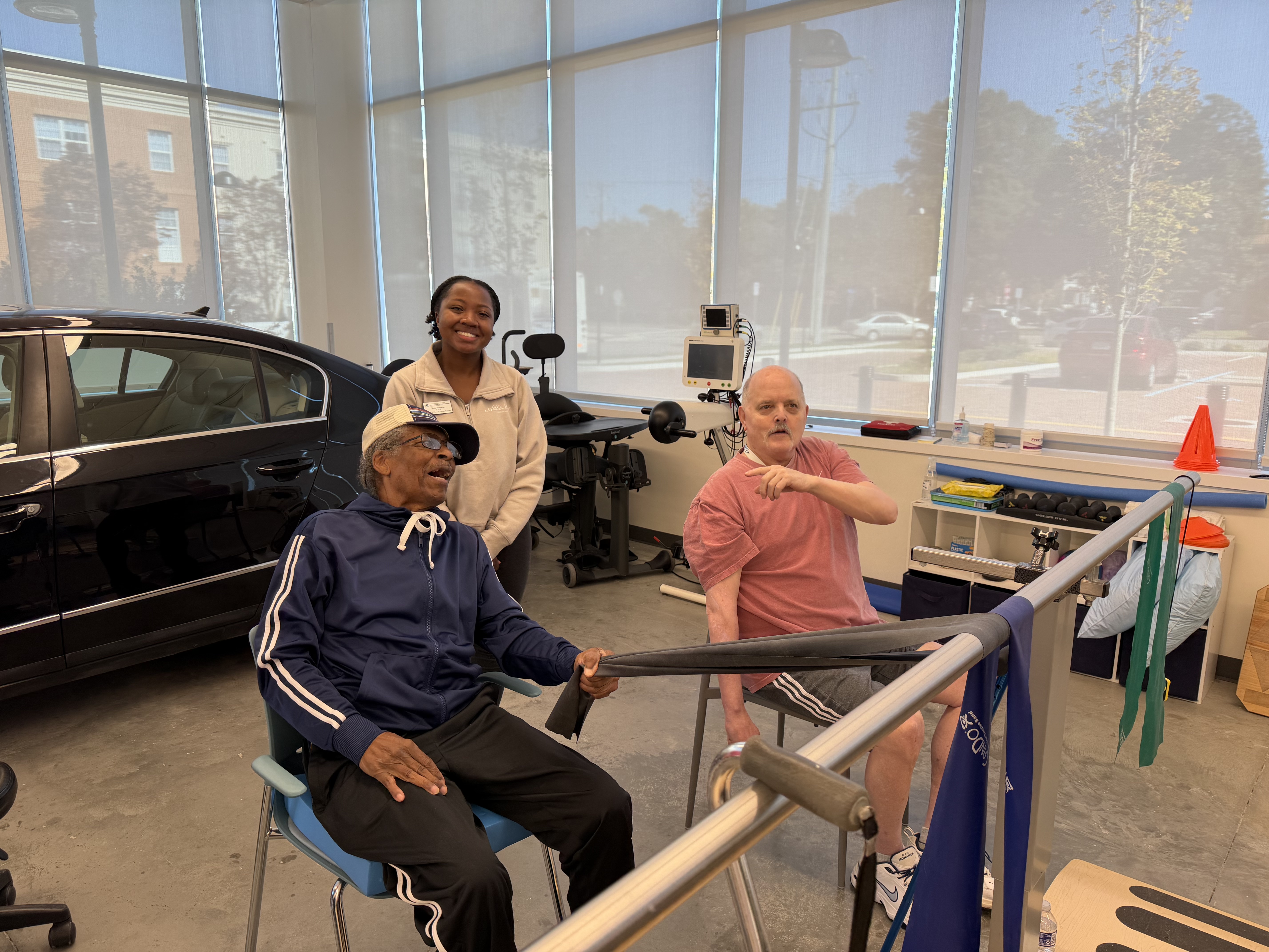 For many, that routine is what makes progress possible. “I love the program. It motivates me and it reiterates what I do at home,” said Luv Greene, who joined this semester. Paul Burk, who has participated since 2020, added that what keeps him coming back is the camaraderie of the class. “Mack makes me laugh. He inspires me.”