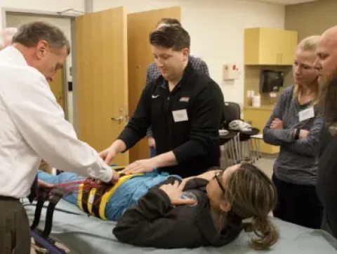 The American College of Surgeons course combines lecture and skills stations to teach standards of trauma care and practical life saving skills.