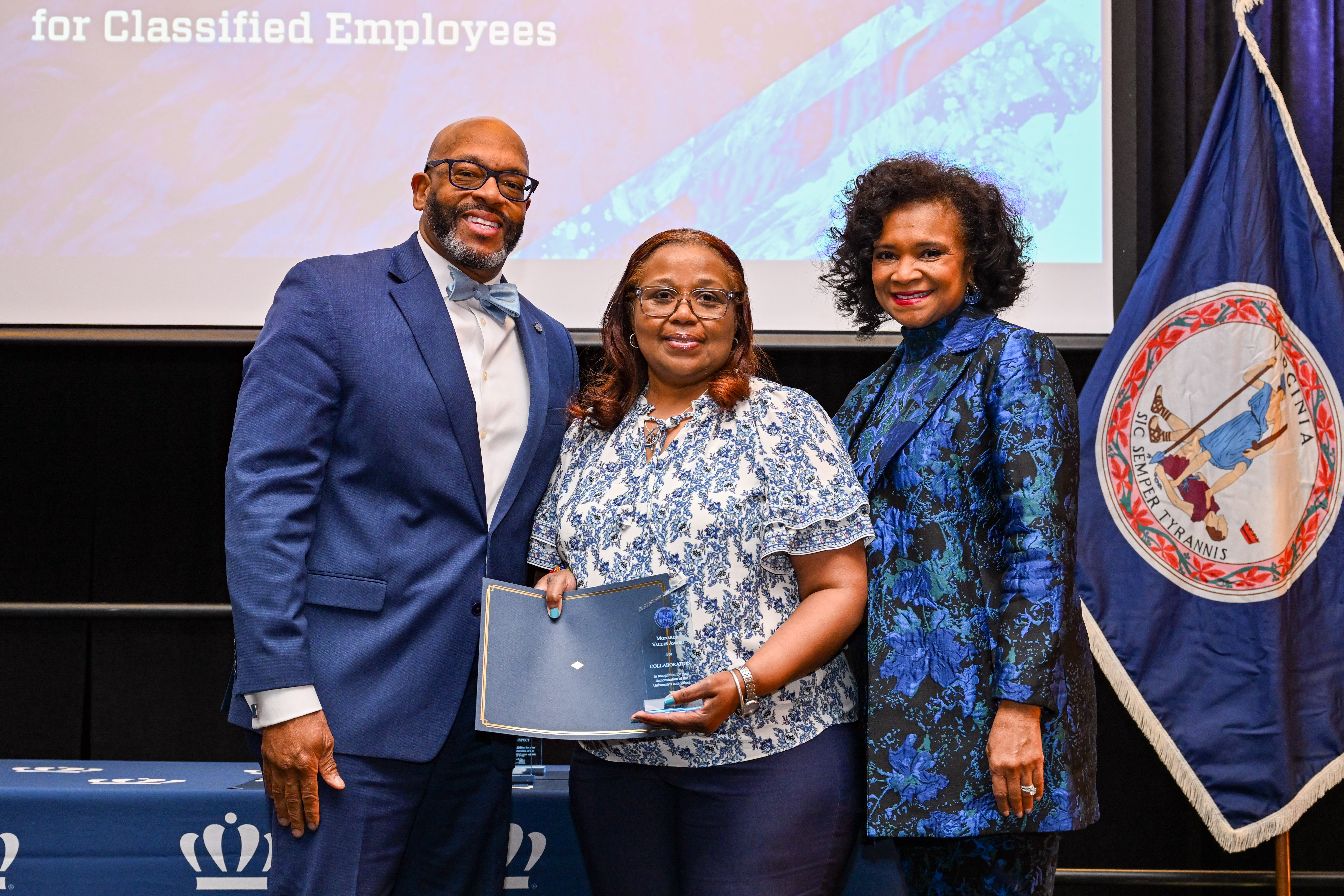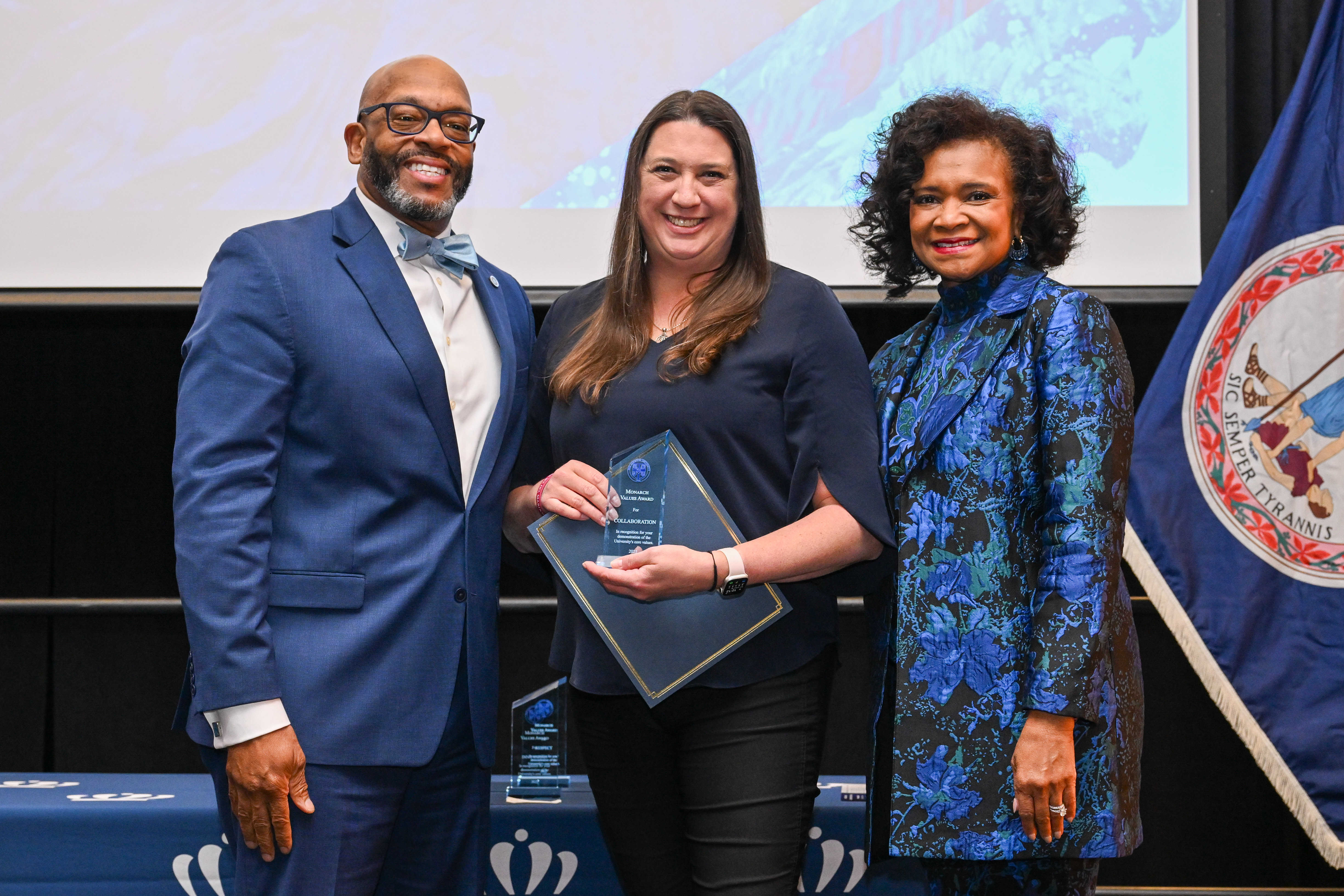 President Brian O. Hemphill and Vice President Alonzo Brandon with Monarch Values Award winner Amber Gwaltney at the Monarch Milestones Celebration on April 10, 2025.