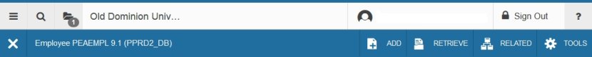 To access documents in WebXtender from the new version of Banner, select RETRIEVE (Alt + R), or to add a document, select ADD (Alt + A).