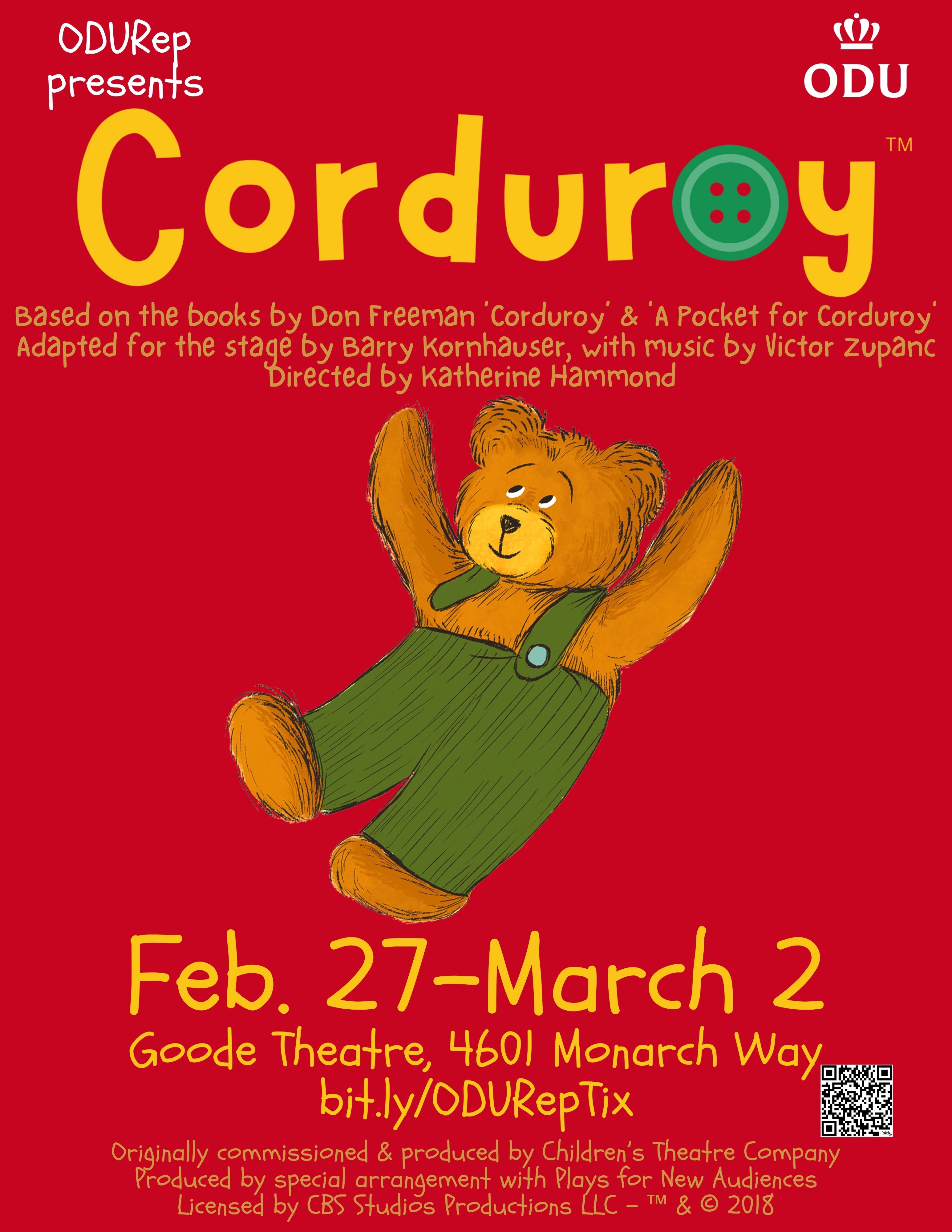 Based on the books Corduroy and A Pocket for Corduroy by Don Freeman, adapted for the stage by Barry Kornhauser, with music by Victor Zupanc; directed by Katherine Hammond