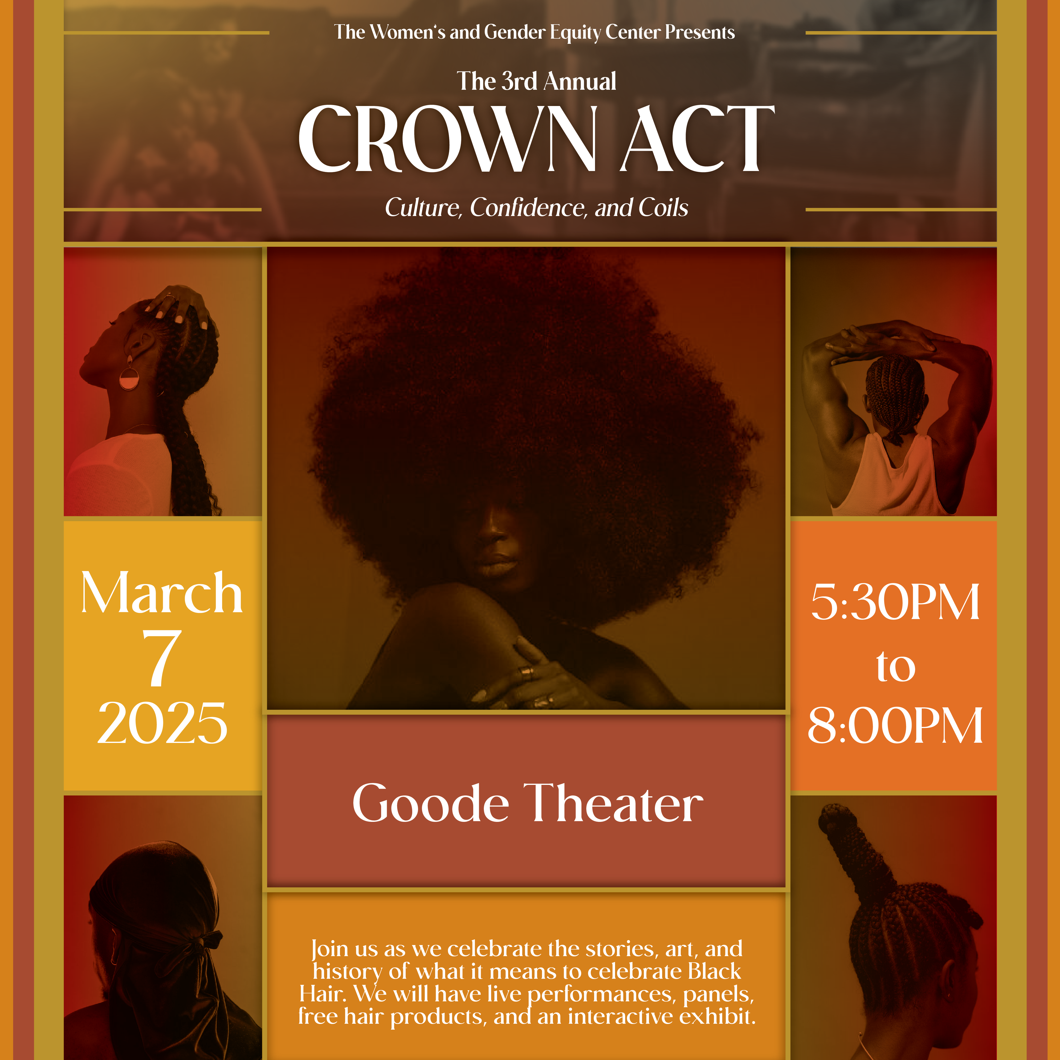 Join us as we honor the beauty, history, and artistry of Black Hair! Enjoy engaging panels, an interactive exhibit, and free hair products while we celebrate the stories and culture that make Black Hair so special. Don't miss this exciting experience!