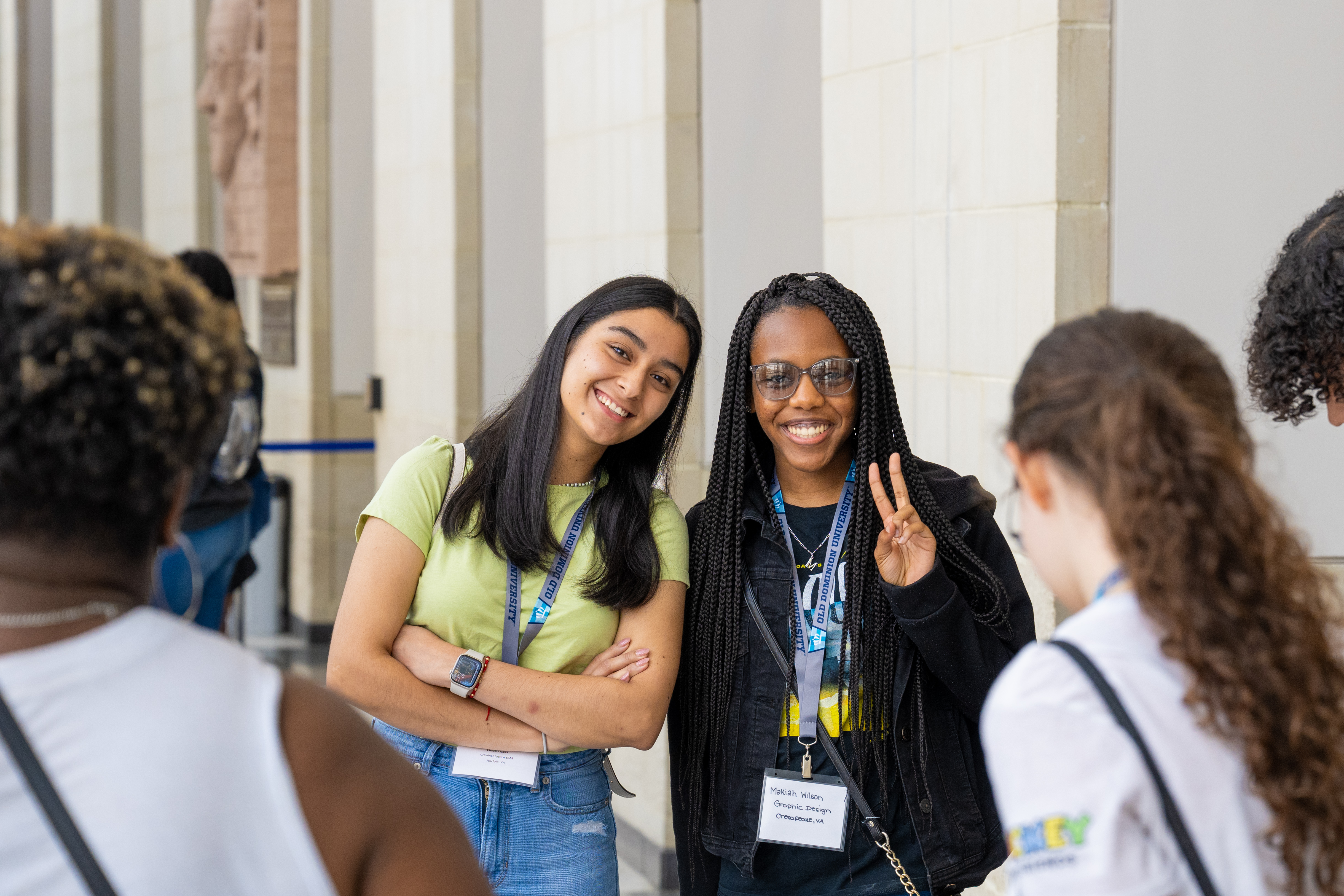 Linda Lopez and Makiah Wilson pose for a photo during the breakout session at the College of Arts and Letters. Photo Nicholas Clark/ODU