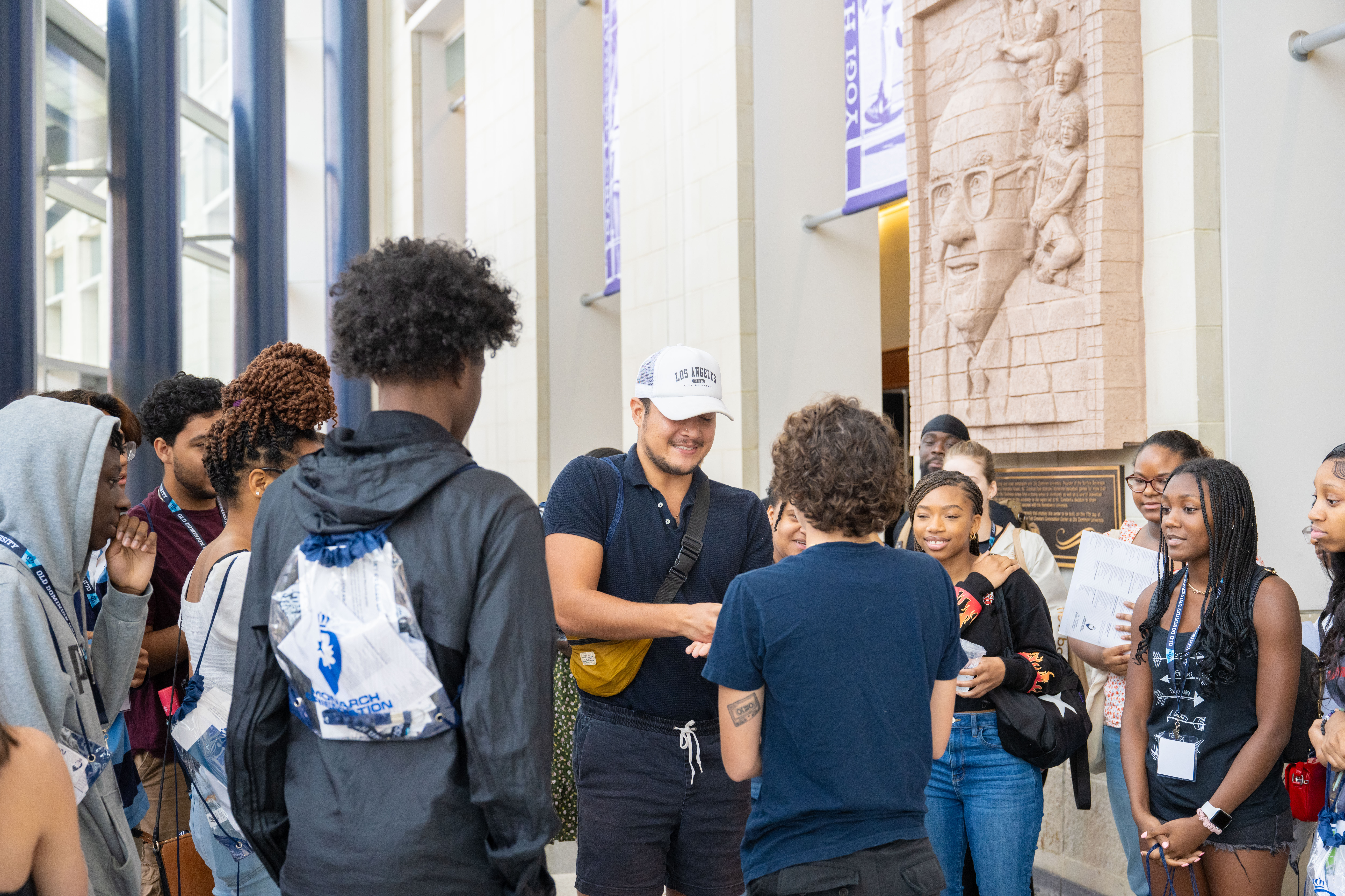 Orientation leader Carmen Fuentes meets with incoming business majors. Photo Nicholas Clark/ODU