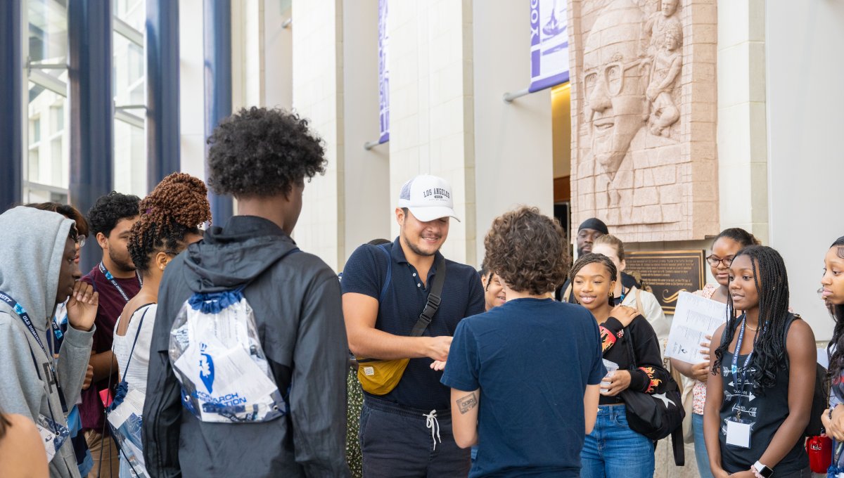 Students play rock-paper-scissors during a breakout session at Chartway Arena. Photo Nicholas Clark/ODU