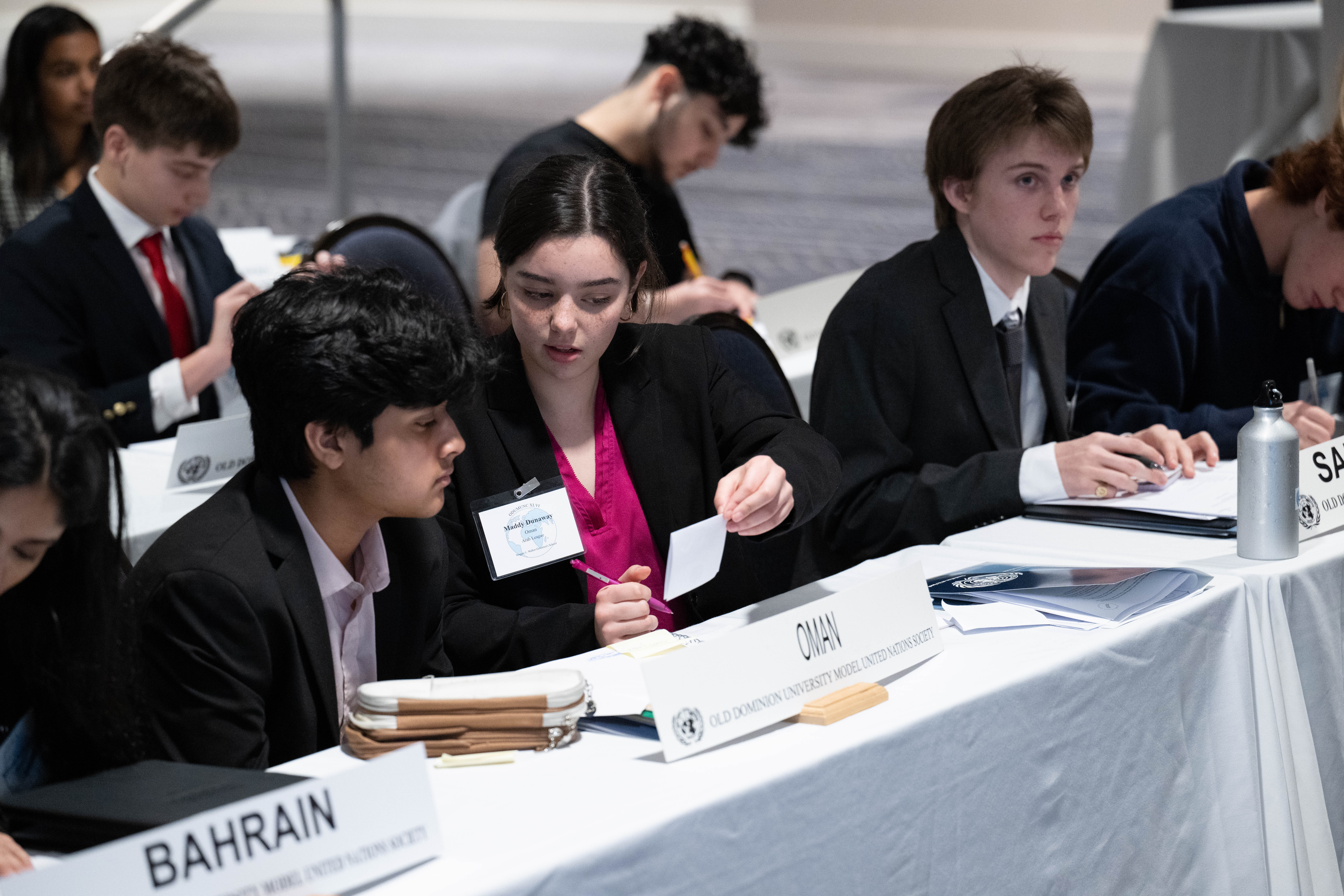 As delegates present their case, students take notes. Photo Chuck Thomas/ODU