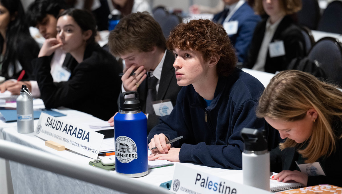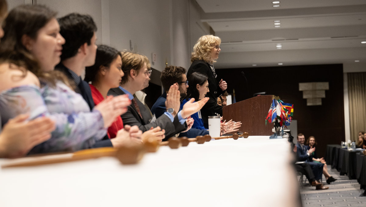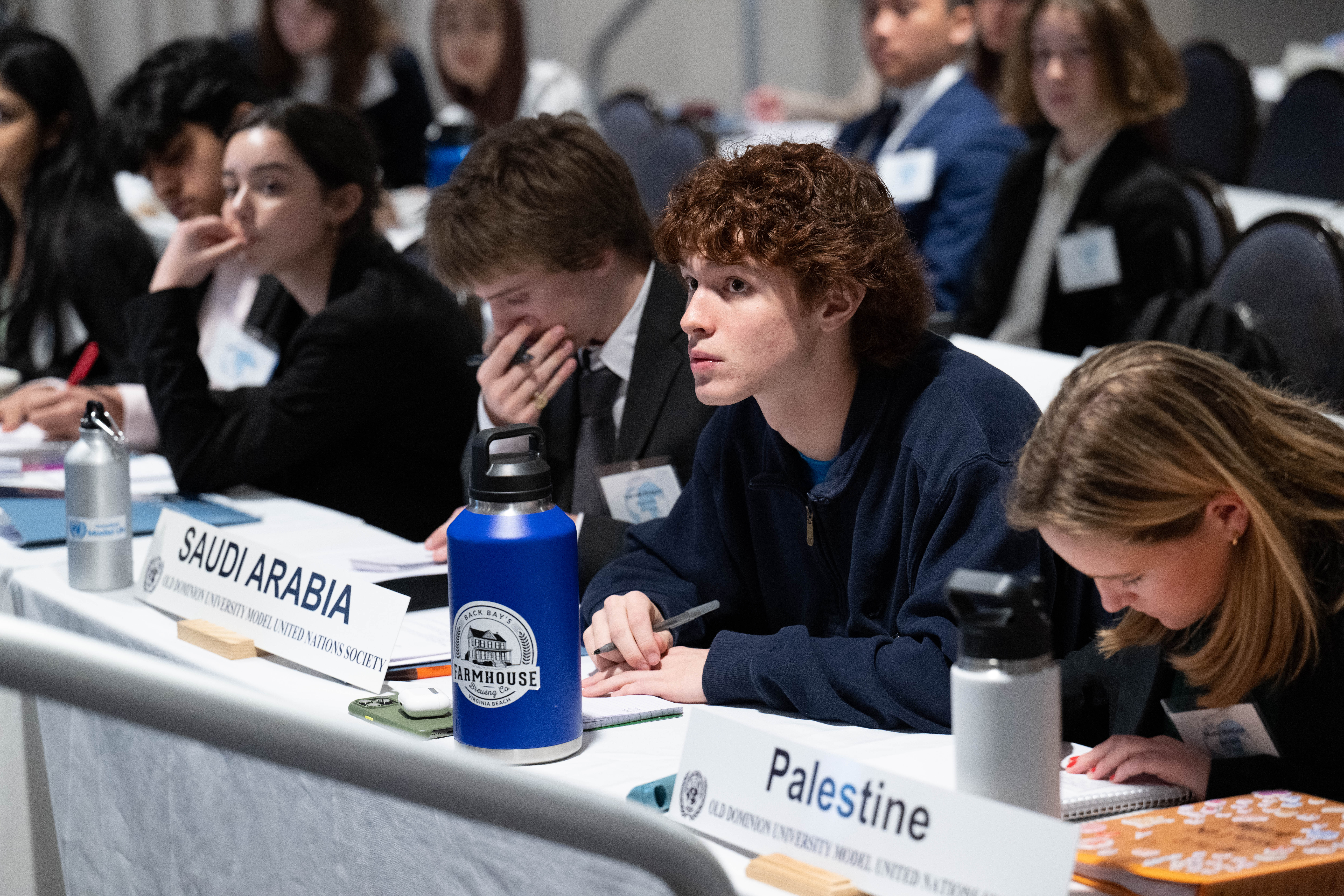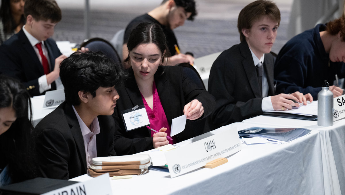 Delegates have one minute to present their case to representatives of other countries. Photo Chuck Thomas/ODU
