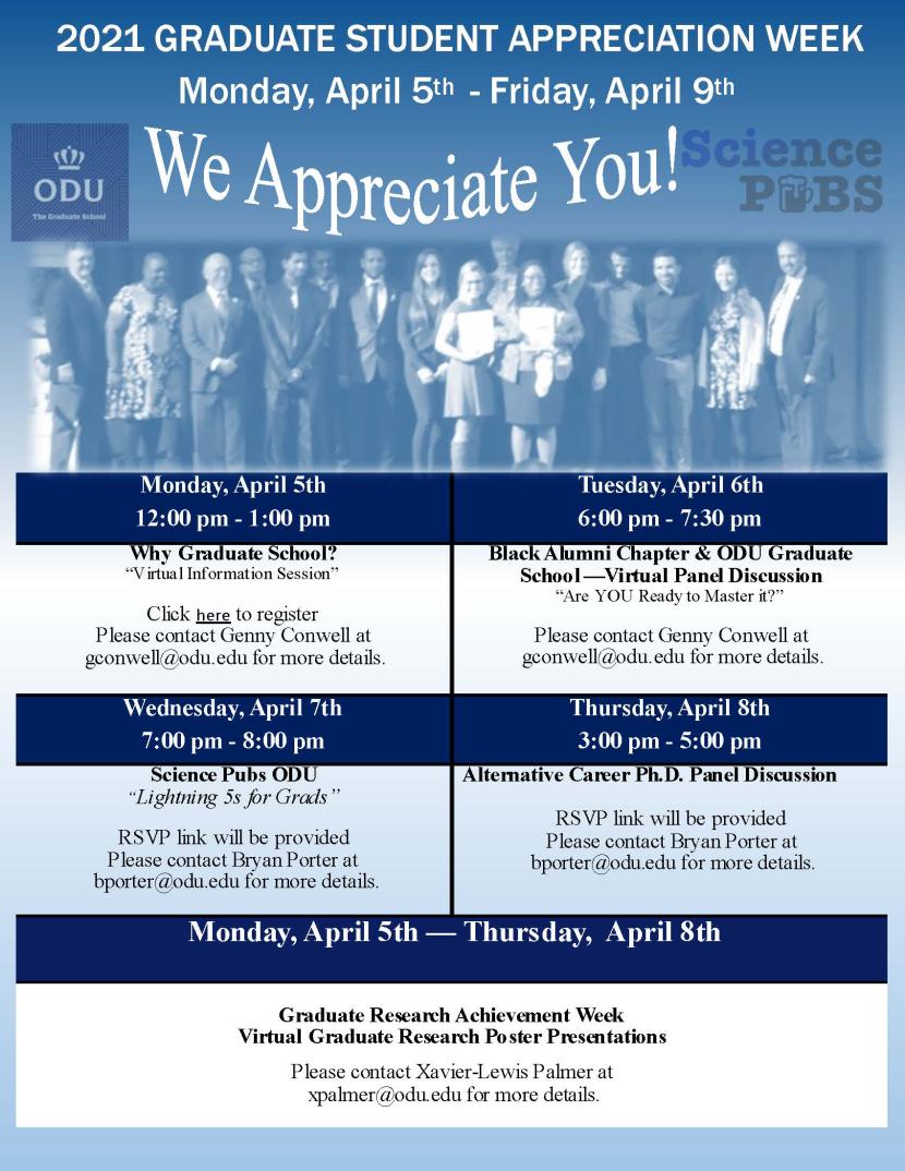 ODU’s annual Graduate Student Appreciation Week Kicks off April 5