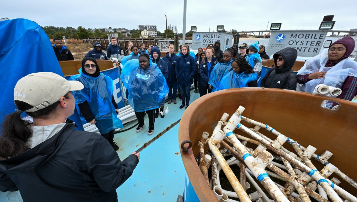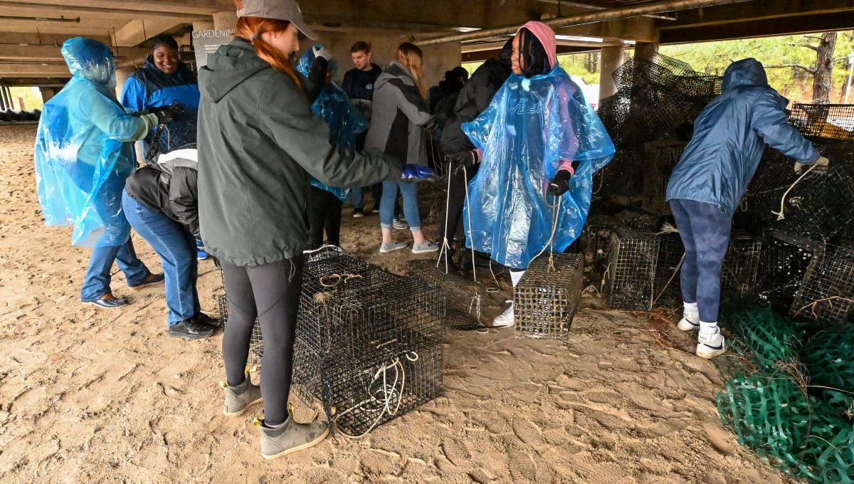 Some students and staff from ODU spent their spring break giving back to the Hampton Roads community through volunteer work, including a trip to the Brock Environmental Center on March 6 to help the Chesapeake Bay Foundation with oyster and reef restoration. This is the second year of ODU’s “alternative spring break” program which is led by the Office of Leadership and Learning. Photos Chuck Thomas/ODU