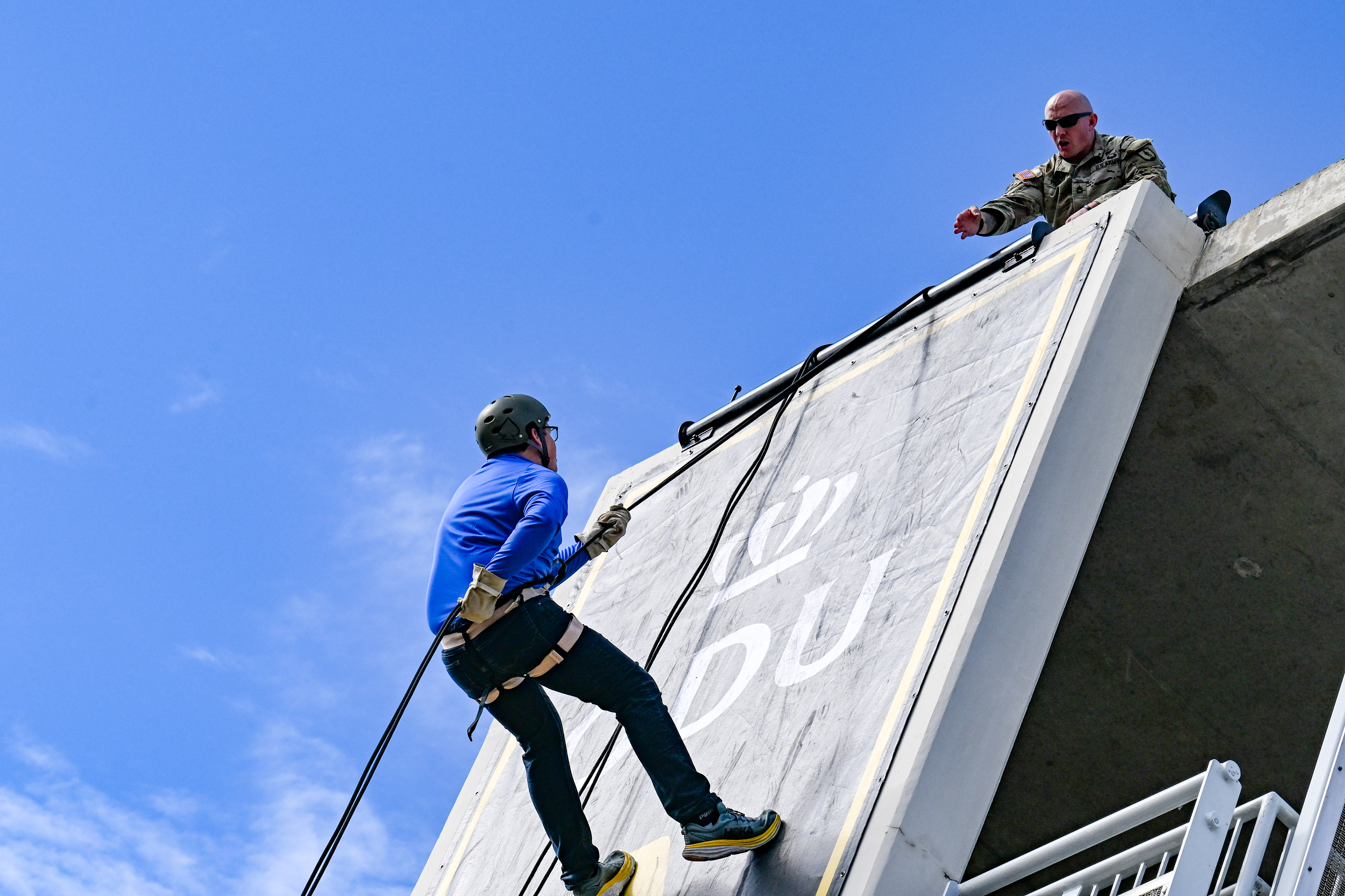 The rappelling exercises empower cadets to conquer fears, build confidence and master the art of safe descent. Photo Chuck Thomas/ODU