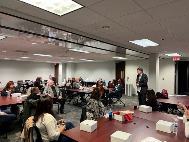 On November 30, 2022, alumni, current students, prospective students, and faculty of the Community College Leadership Program and Higher Education Program gathered at the Virginia Community College System offices in Richmond, Virginia. Drs. Laura Smithers, Mitchell R. Williams and Charles Mathies updated the group with CCL and HIED program highlights over lunch. The President of Brightpoint Community College, Dr. Ted Raspiller, and VCCS Interim Senior Vice Chancellor for Academic and Workforce Programs, Dr. Van Wilson, also attended.