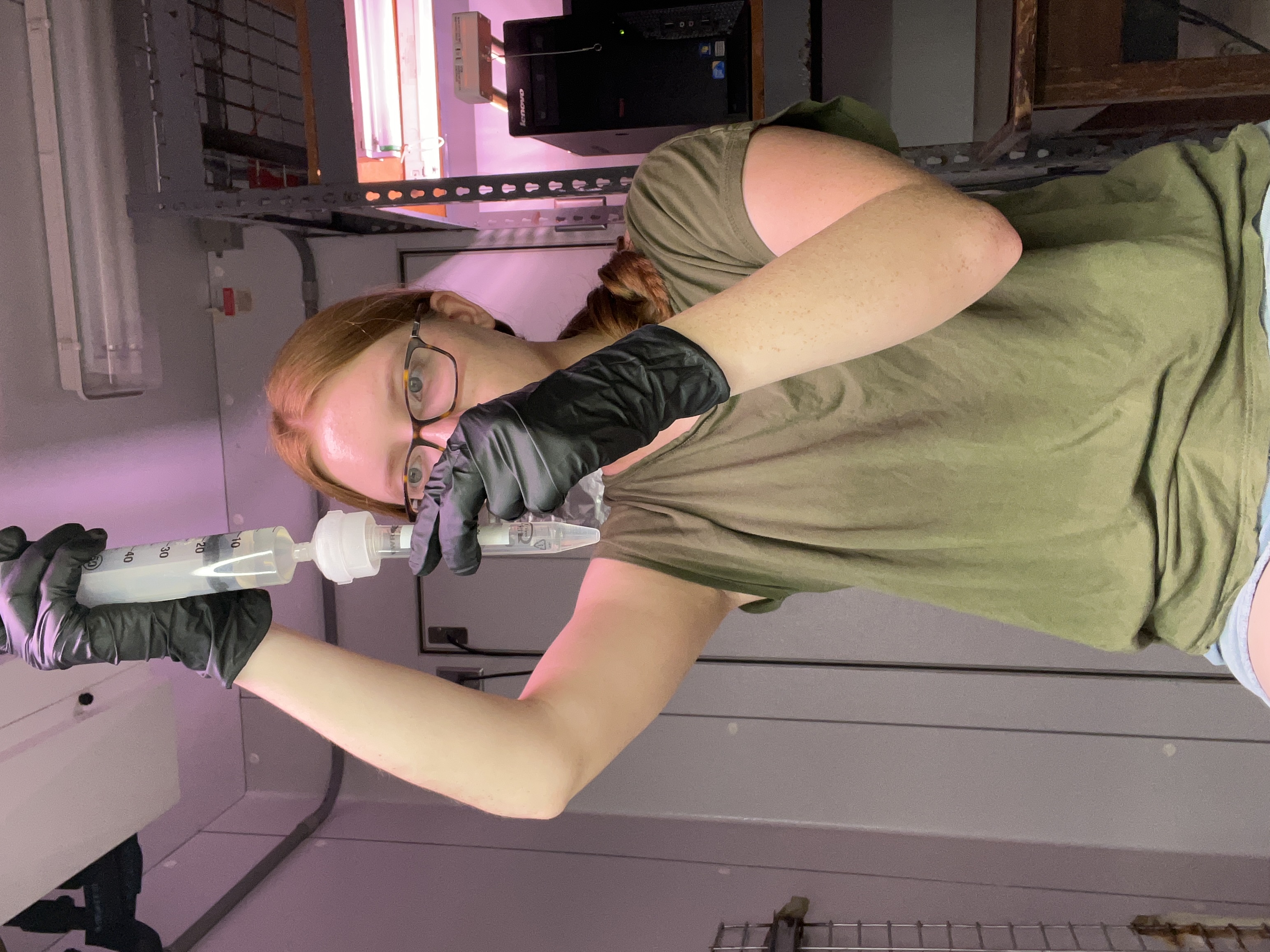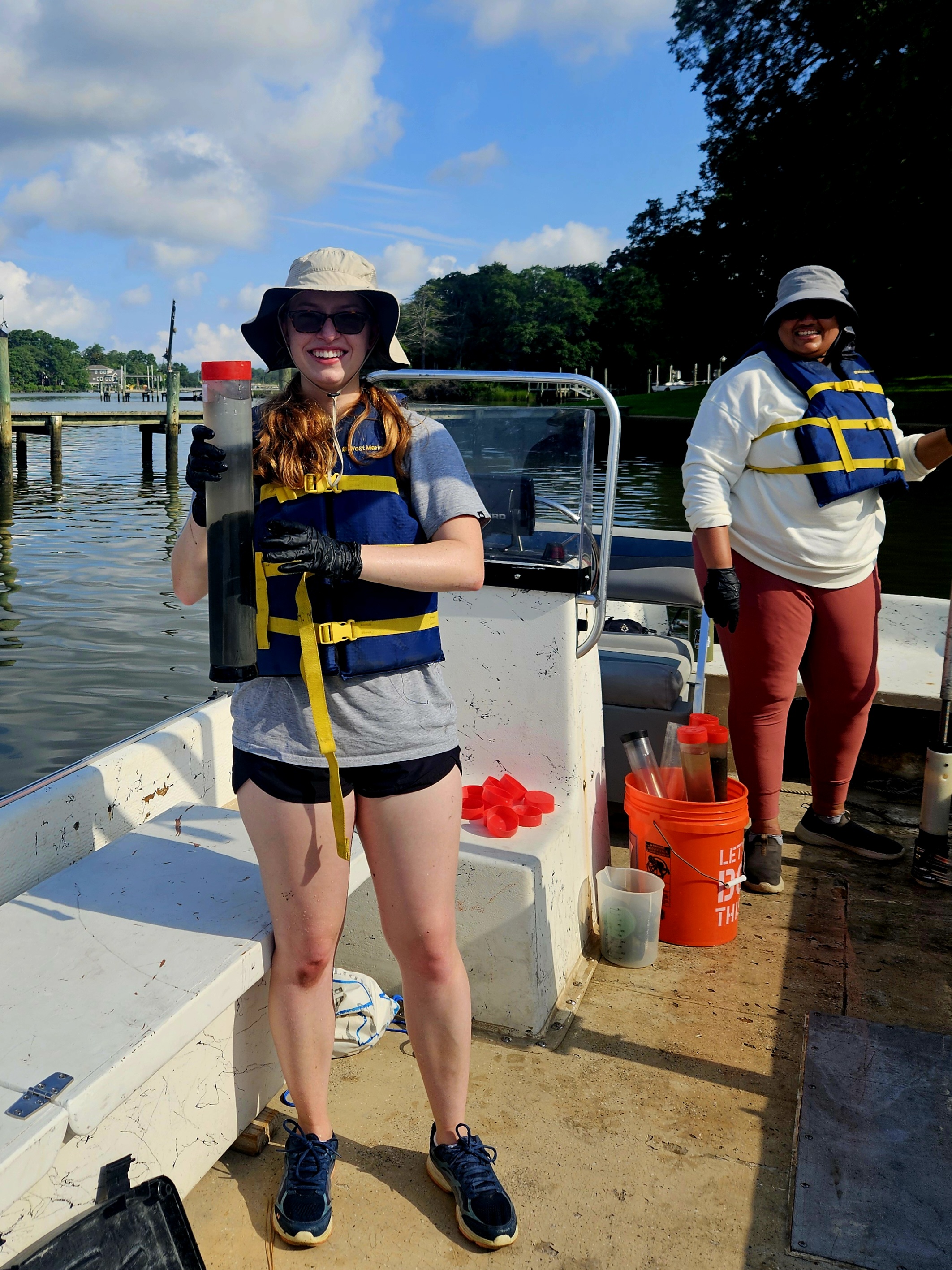 As part of the project, Page and Tejaswini collected sediment cores and conducted controlled experiments to simulate sediment resuspension. Page tracked nutrient release into the water column over time, generating data critical to understanding nutrient cycling and its impact on coastal ecosystems.