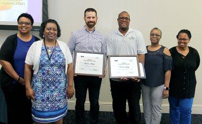 (L to R) Tanya McCown, president; Trina Hawkins, vice president; Brian Klotz, rookie staff member of the year; David Figgs, staff member of the year; Margaret Oliver, teasurer; and Rama Adderley, secretary