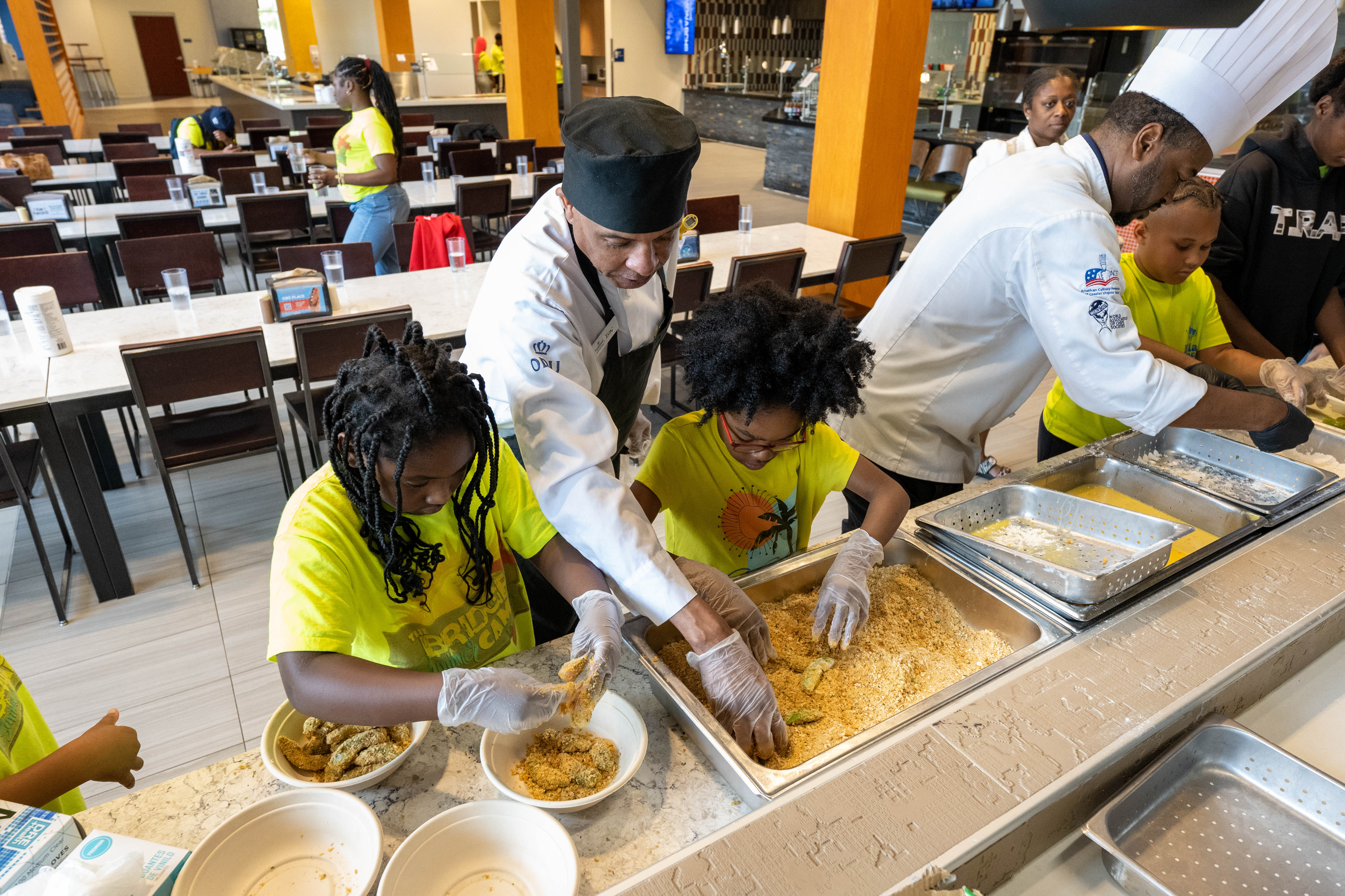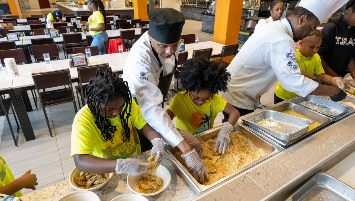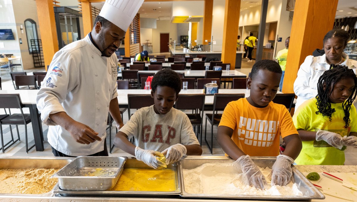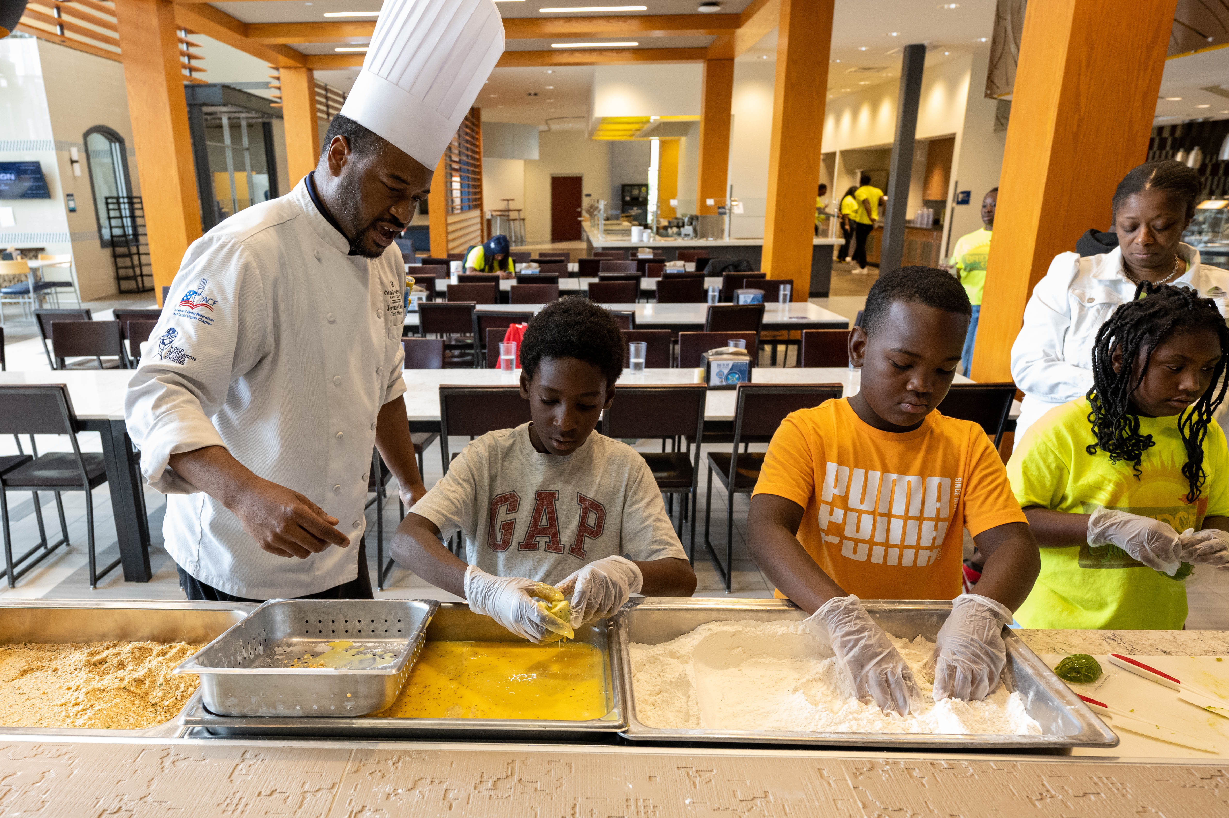 A delightful culinary experience unfolded at Broderick Dining Commons on June 23 as youths joined ODU chefs for a demonstration about preparing healthy foods. Attendees from the Bridge Summer Camp seized the opportunity to don aprons, roll up their sleeves and cook alongside the chefs. Photos Chuck Thomas/ODU