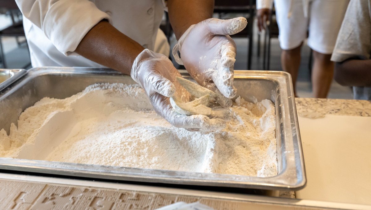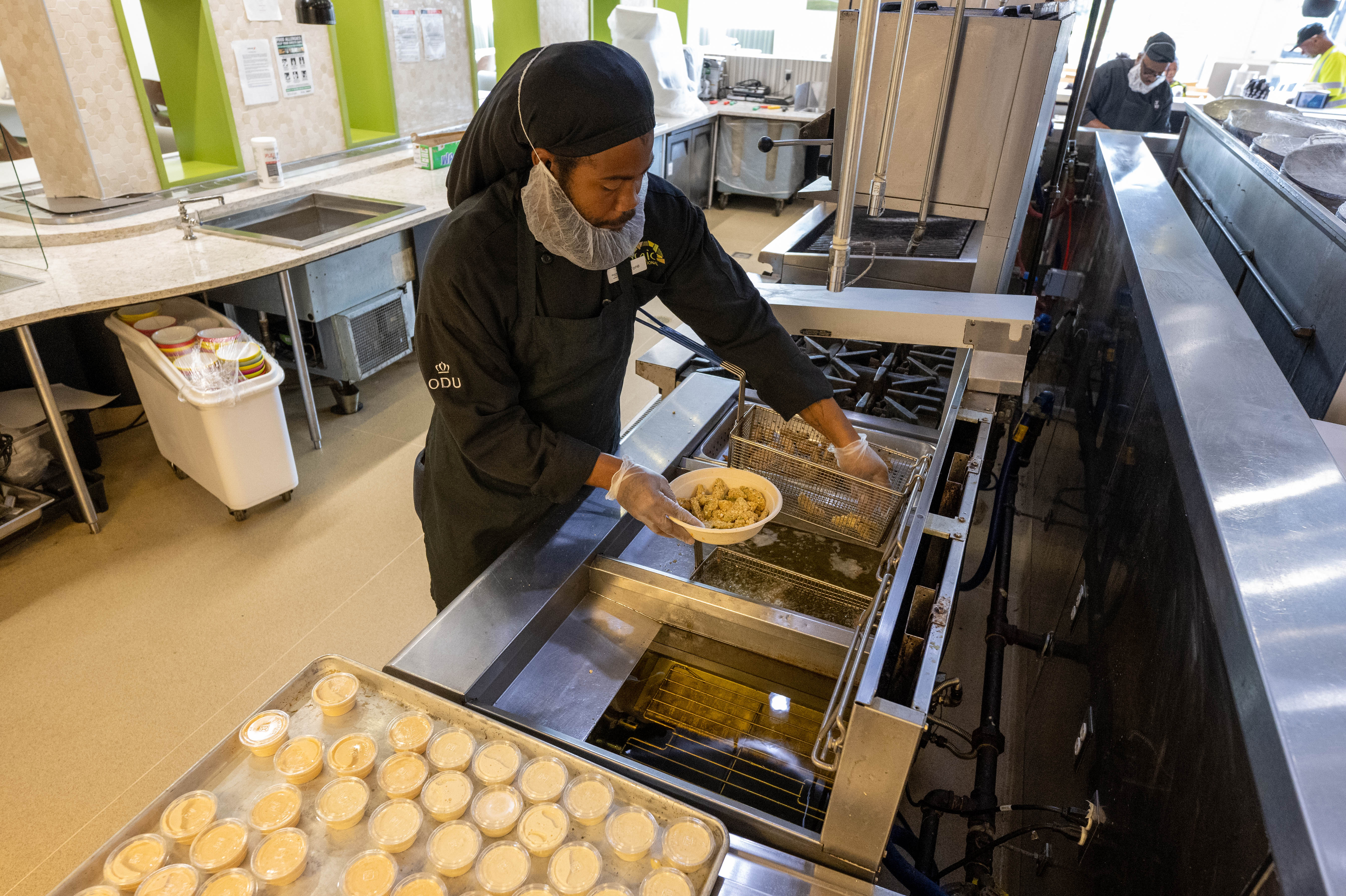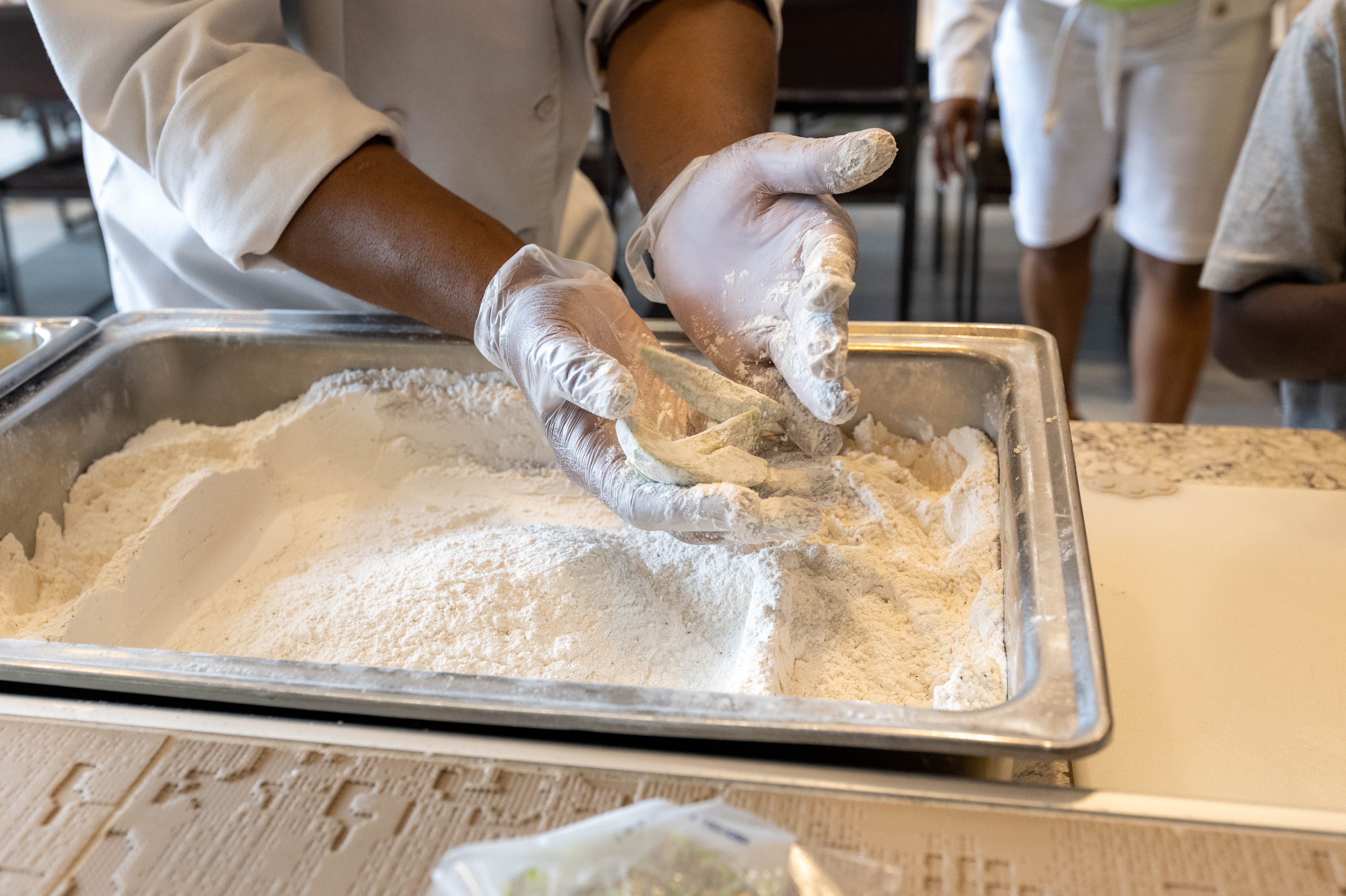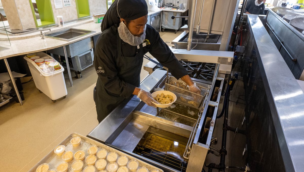 A delightful culinary experience unfolded at Broderick Dining Commons on June 23 as youths joined ODU chefs for a demonstration about preparing healthy foods. Attendees from the Bridge Summer Camp seized the opportunity to don aprons, roll up their sleeves and cook alongside the chefs. Photos Chuck Thomas/ODU