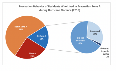 To give context, prior to the current hurricane season, 18% of survey respondents lived in Evacuation Zone A during Hurricane Florence in 2018. Of those respondents, despite a mandatory evacuation order, roughly 66% did not evacuate, 30% evacuated and 4% went to a public shelter.
