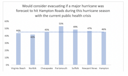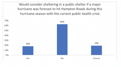 If a severe weather event hits Hampton Roads during the 2020 hurricane season, residents say they are less likely to go to public shelters or evacuate relative to previous hurricane seasons.