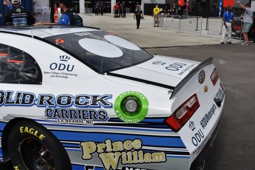 Before his son even finished unpacking on move-in day, Michael had already agreed to make room on Mason's car, helmet and uniform for the Batten College of Engineering and Technology logo, which was proudly displayed during the Richmond Xfinity race.