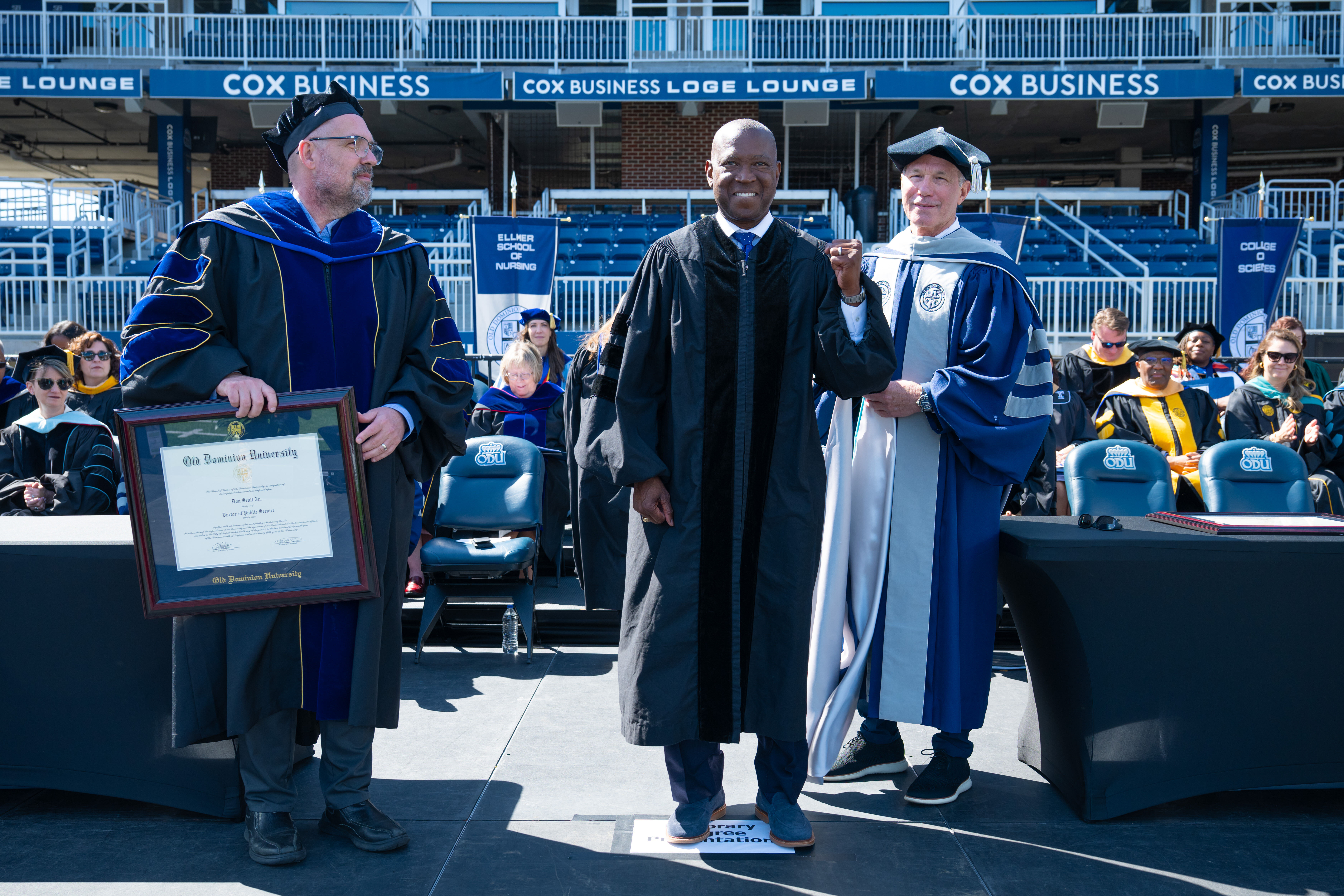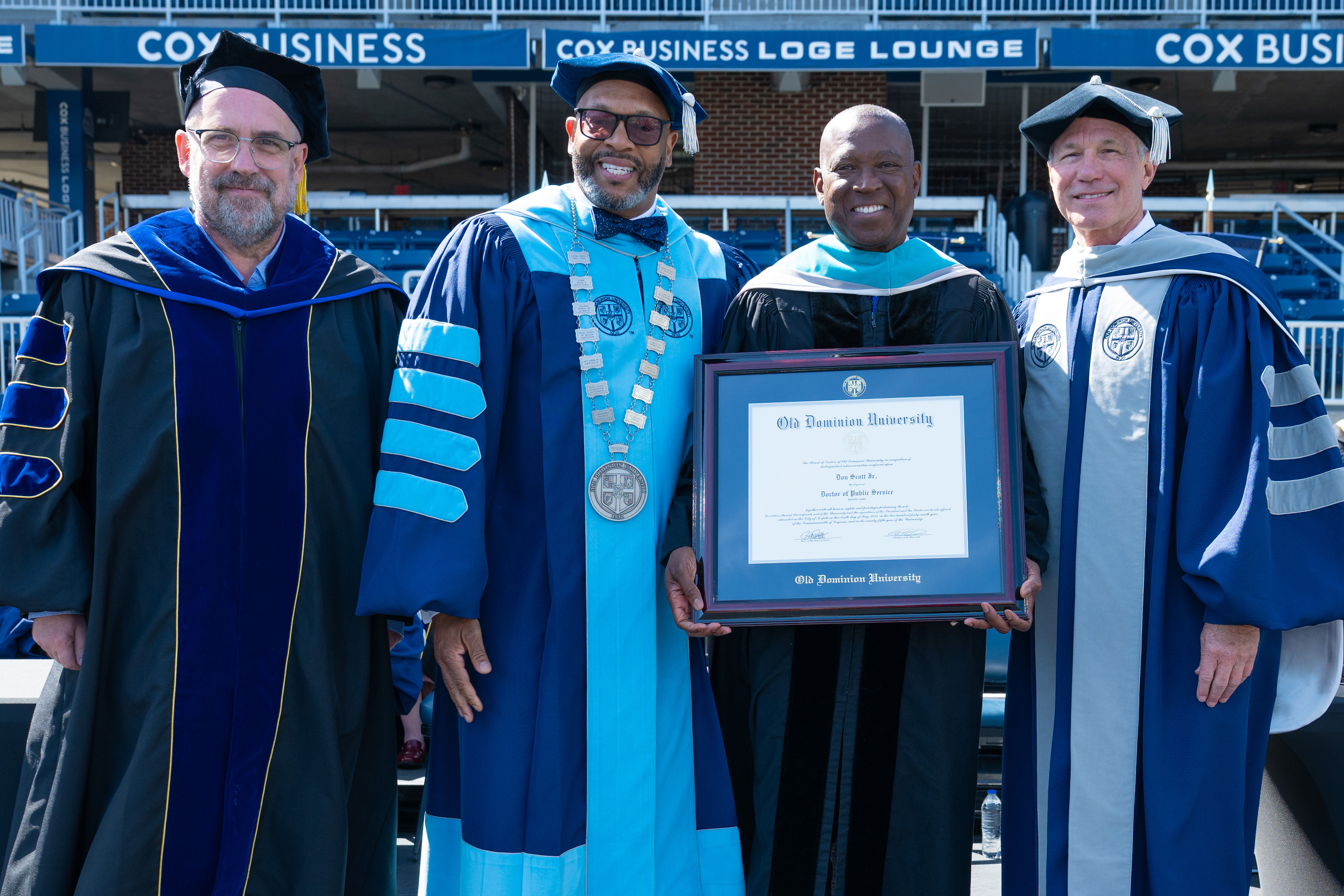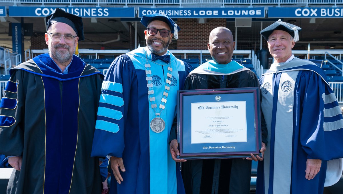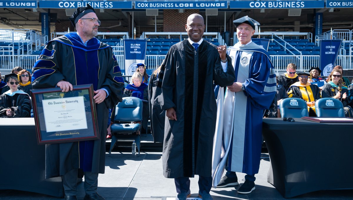 The University also bestowed an honorary doctorate of public service to The Honorable Don Scott, who represents the 88th district in Virginia’s House of Delegates. In 2024, he was elected as the first Black speaker of the House of Delegates in the state’s 400-year history. Speaker Scott served as a U.S. Navy officer and earned his law degree from Louisiana State University. He was elected to the Virginia House of Delegates from Portsmouth in 2019 and was chosen as House Democratic Leader in 2022 before his selection as House Speaker last year. His unanimous election as speaker wasn’t just symbolic – it reflected his ability to bring people together and to lead with both principle and purpose. Speaker Scott is a passionate and tireless champion for major investments in public education, criminal justice reform, affordable healthcare, and policies that fuel economic opportunity across the commonwealth.