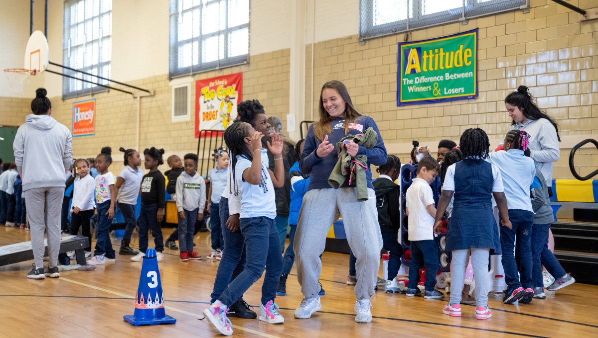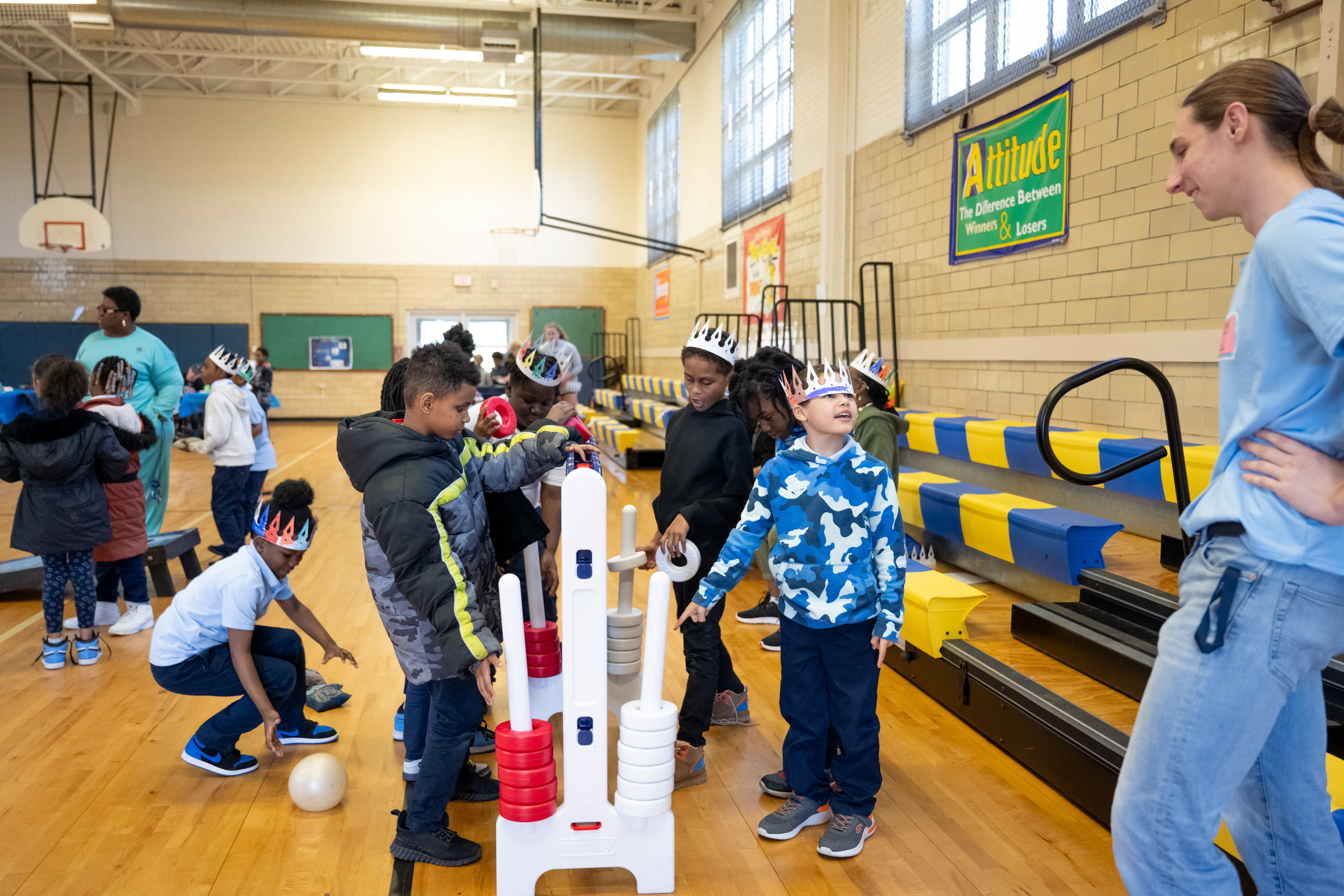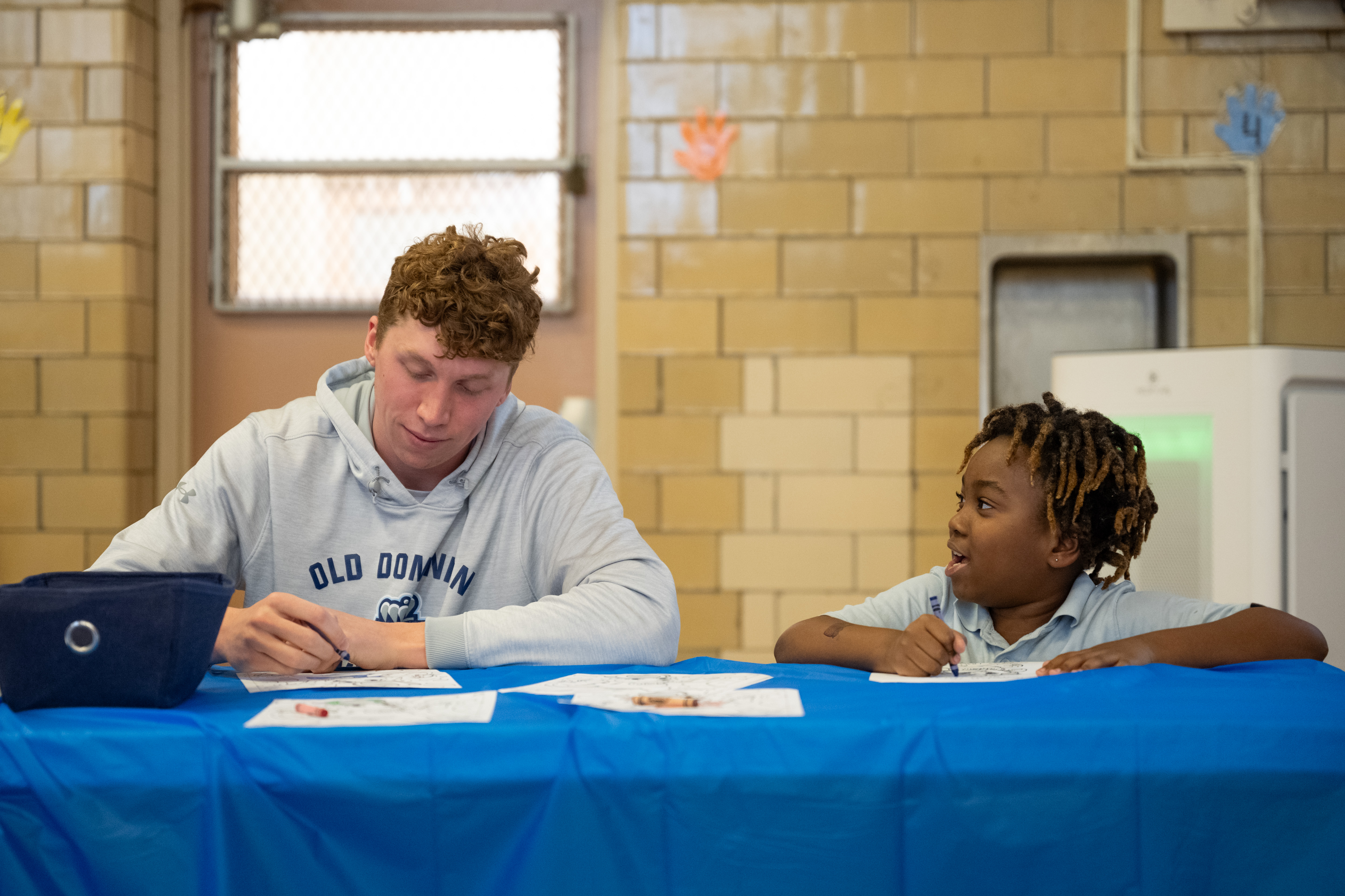 Student-athletes and members of the ODU Alumni Association visited Jacox Elementary School to celebrate ODU Day on March 21. Volunteers led students in activities including games, coloring and taking photos with an ODU background. Photos Nicholas Clark/ODU