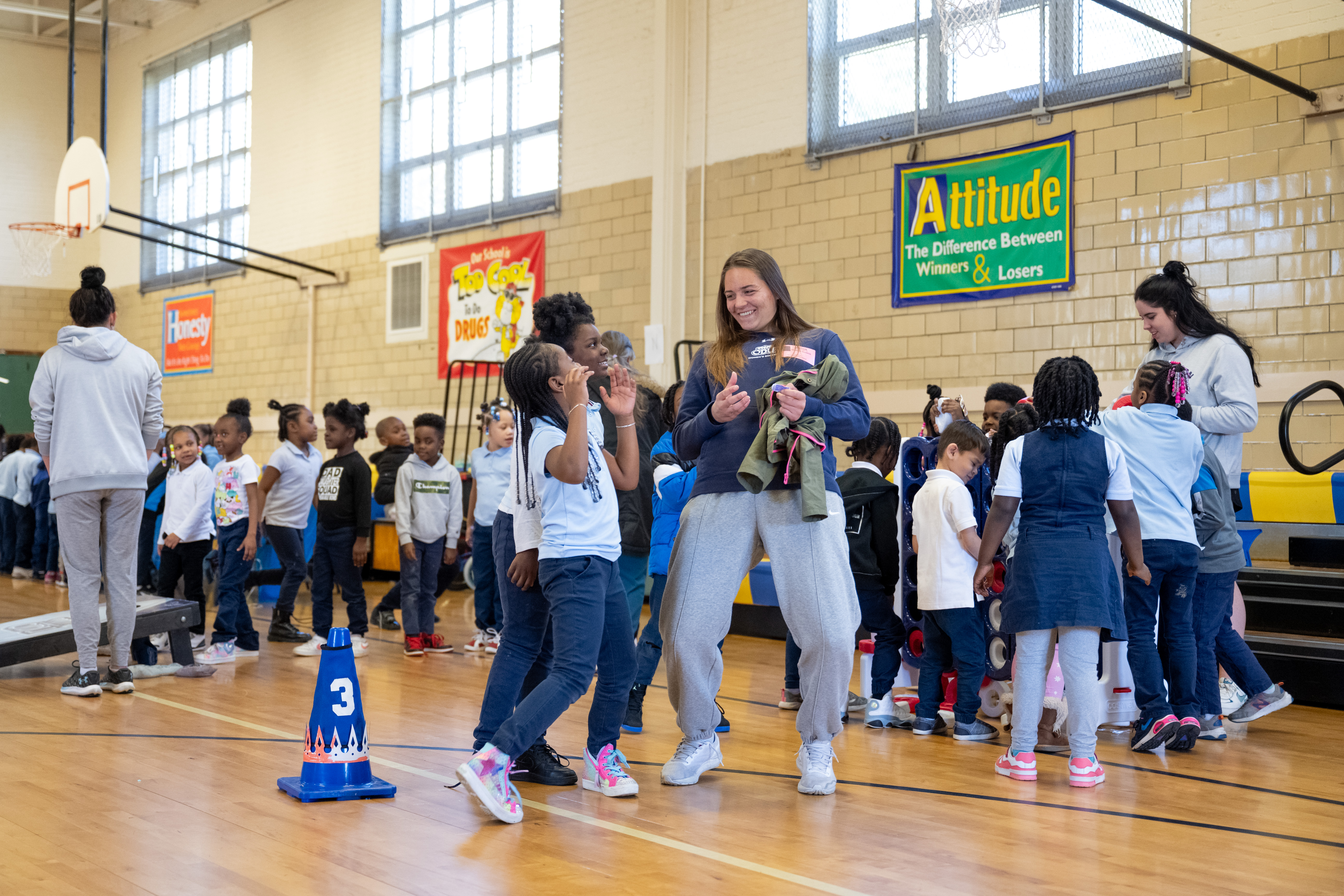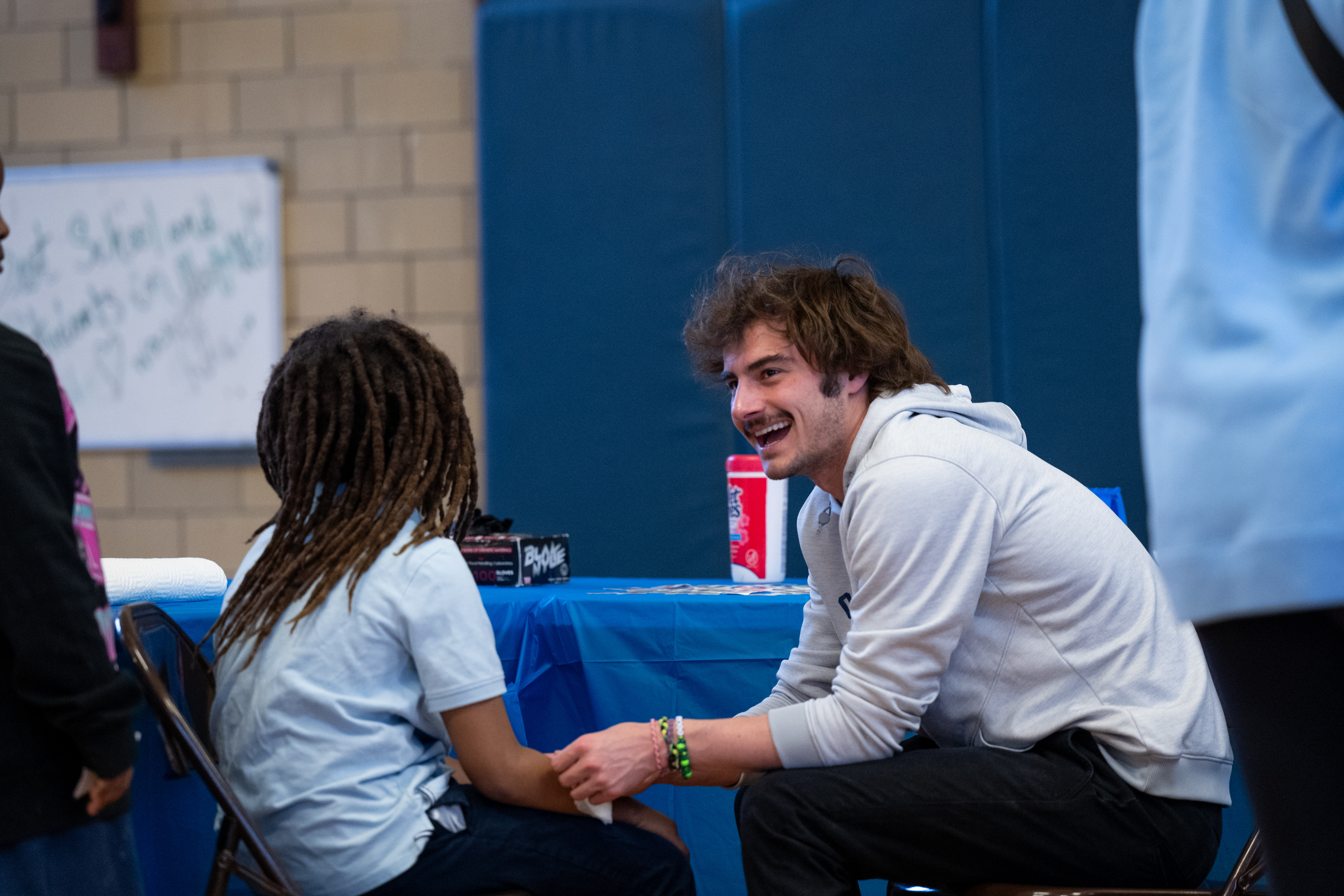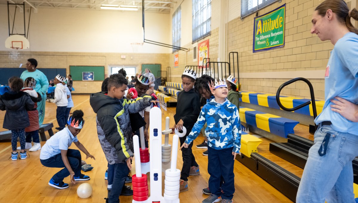 Student-athletes and members of the ODU Alumni Association visited Jacox Elementary School to celebrate ODU Day on March 21. Volunteers led students in activities including games, coloring and taking photos with an ODU background. Photos Nicholas Clark/ODU