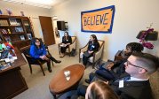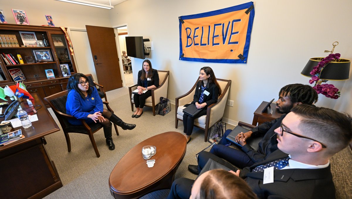 ODU students got a firsthand look at the legislative process during a visit to the Virginia Capitol in Richmond on Feb. 1 for the inaugural ODU Day. They met with state delegates and their staff, posed for a photo on the Capitol steps and participated in an ODU alumni-sponsored lunch. Photos Chuck Thomas/ODU