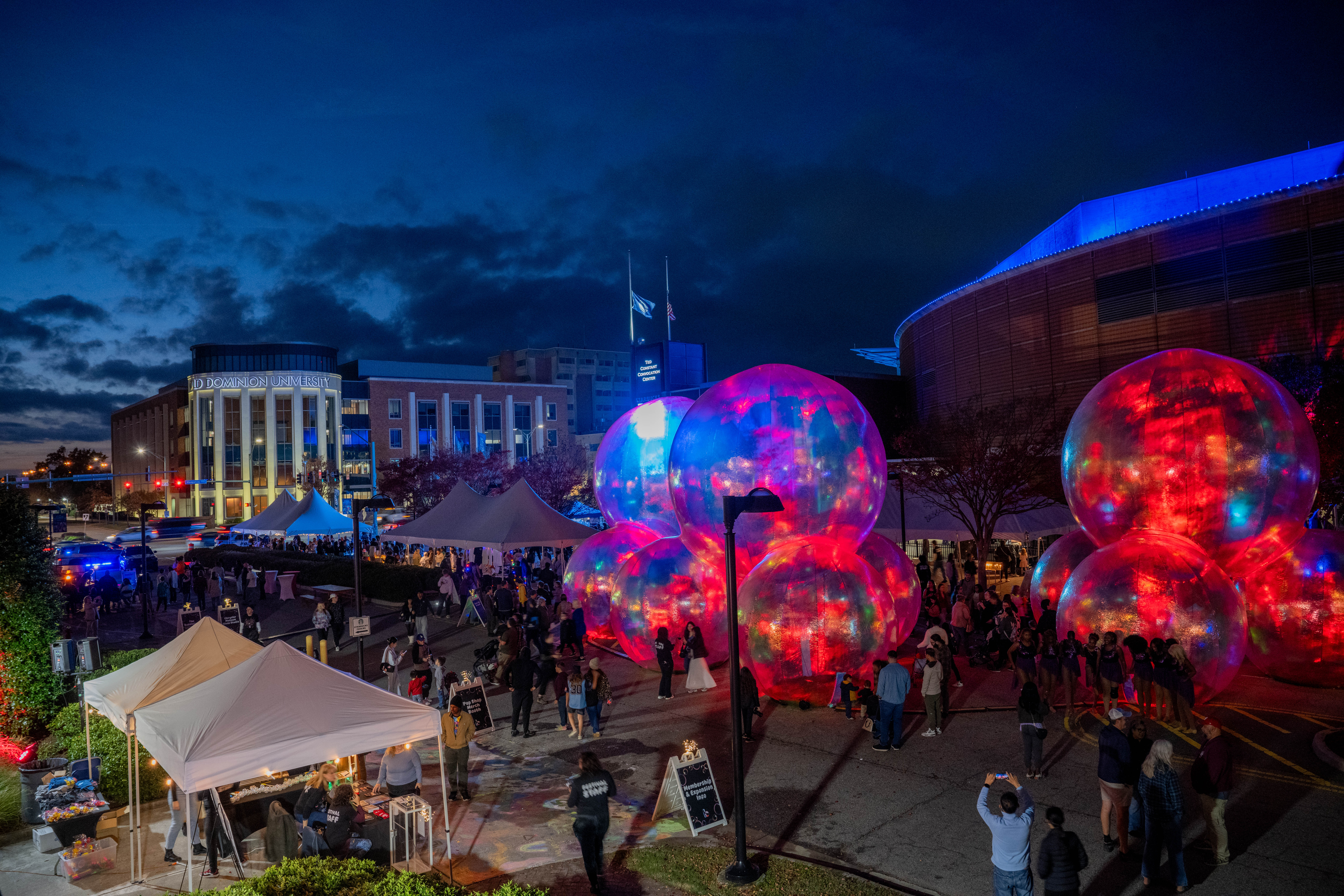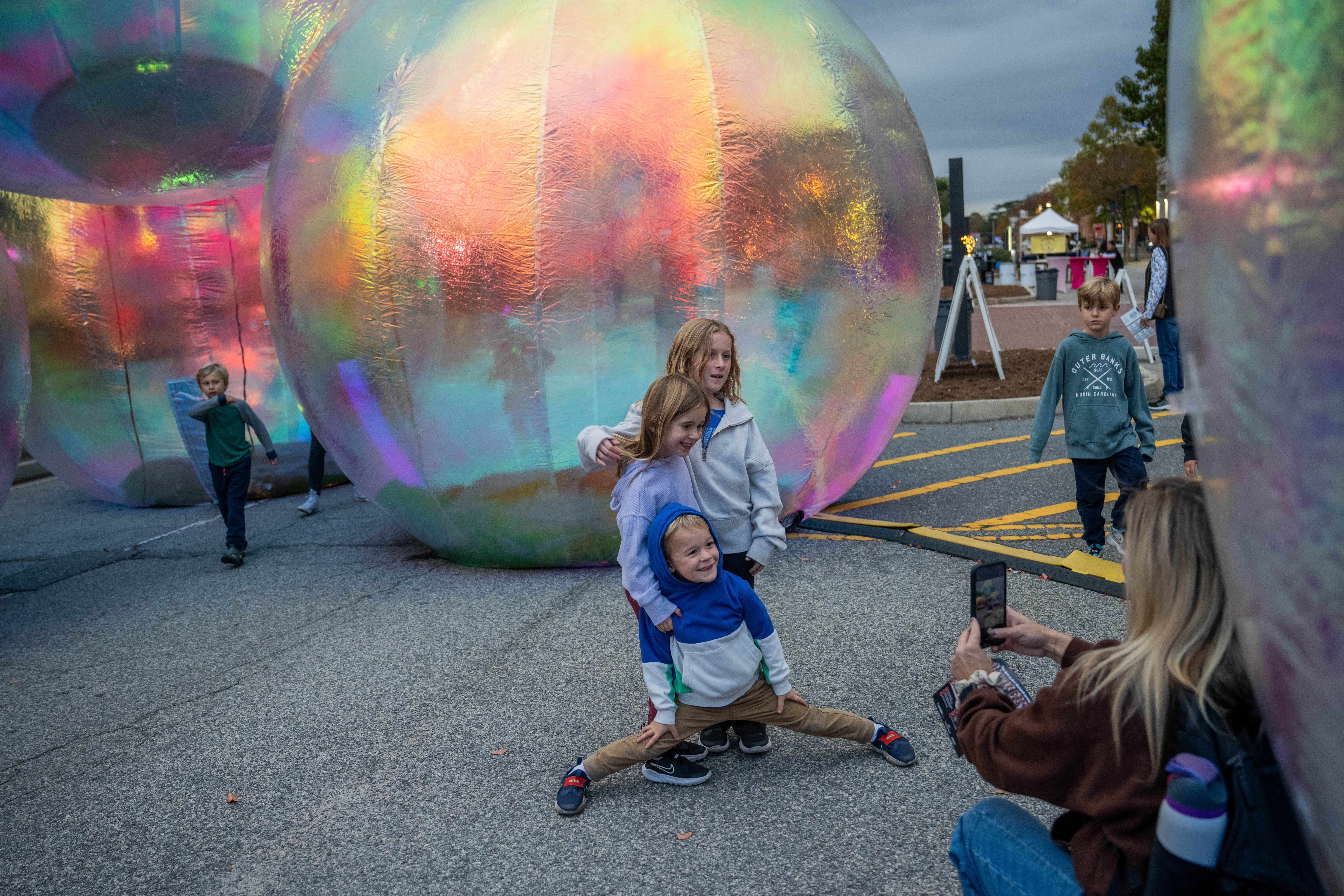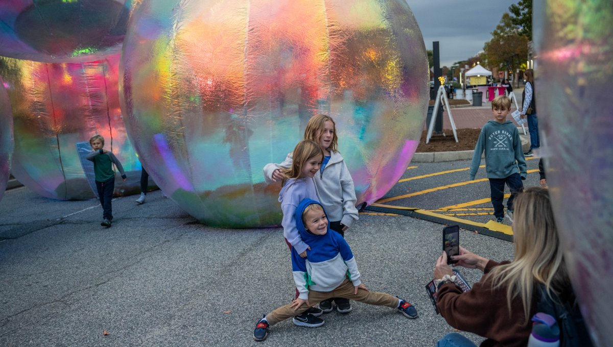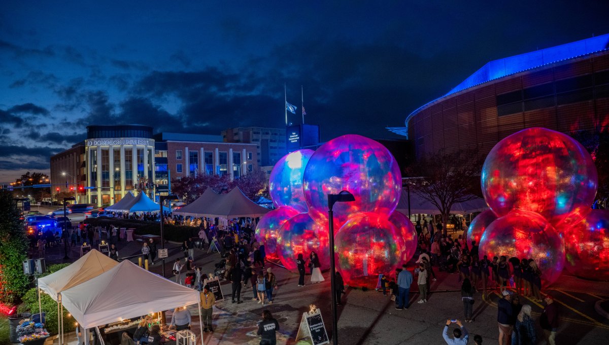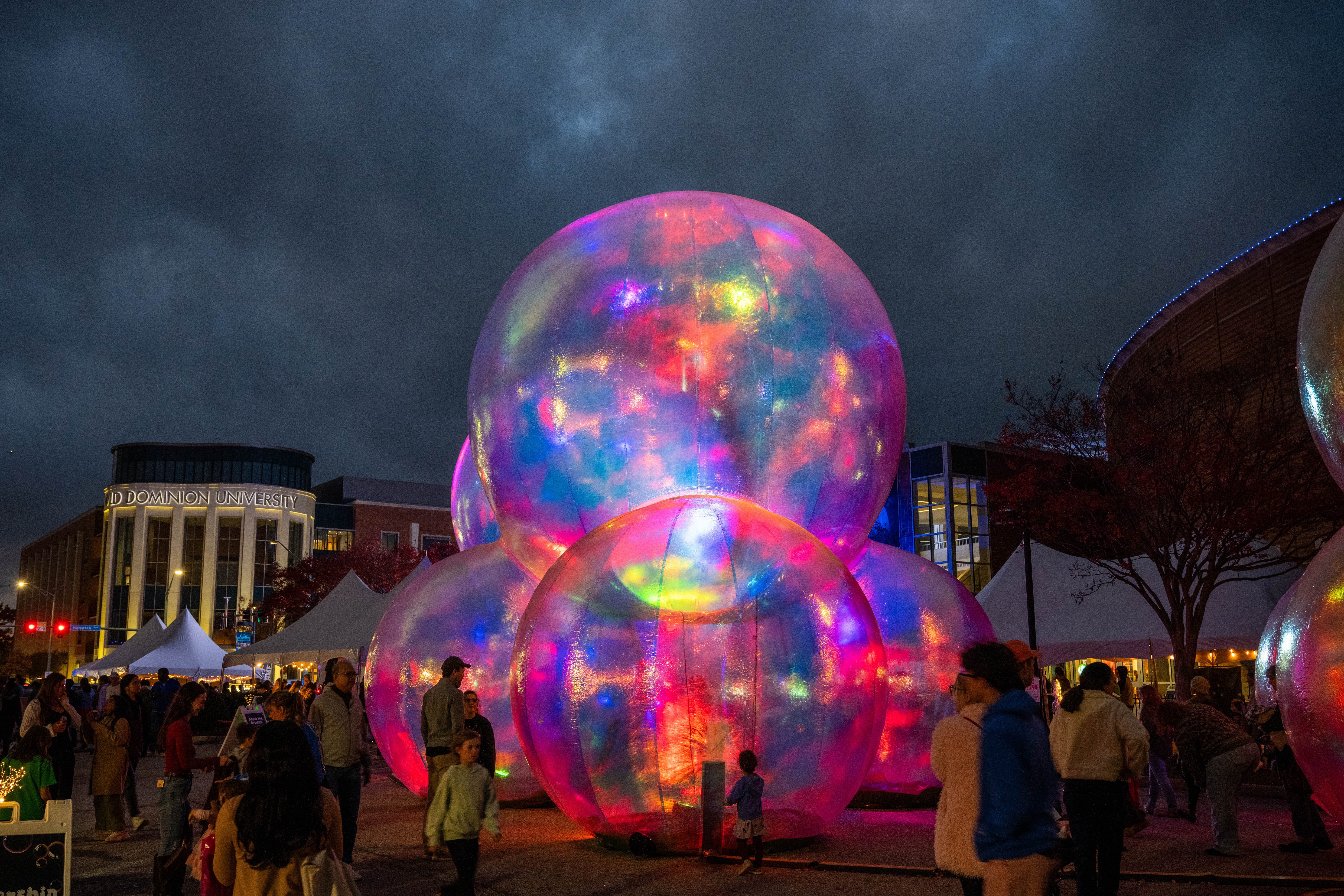 The Barry Art Museum at Old Dominion University hosted its Fifth Annual Public Arts Festival November 7-8. Bubble Fest featured larger-than-life bubbles by Australian design studio Atelier Sisu. Conceived during the COVID-19 pandemic, the immersive installation is meant to convey the mixed feelings of living in a bubble and wanting to live for each moment. Each night from 5-9 p.m., attendees can explore the large-scale art alongside live performances and pop-up art installations. Photos by Michael DiBari/ODU