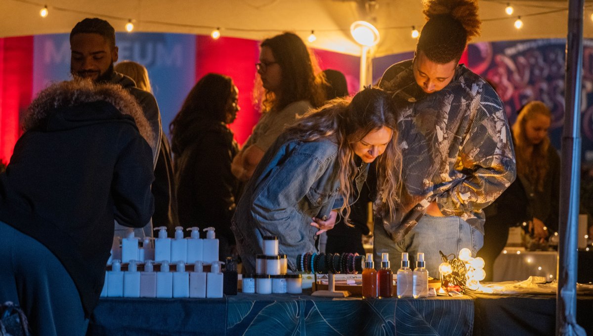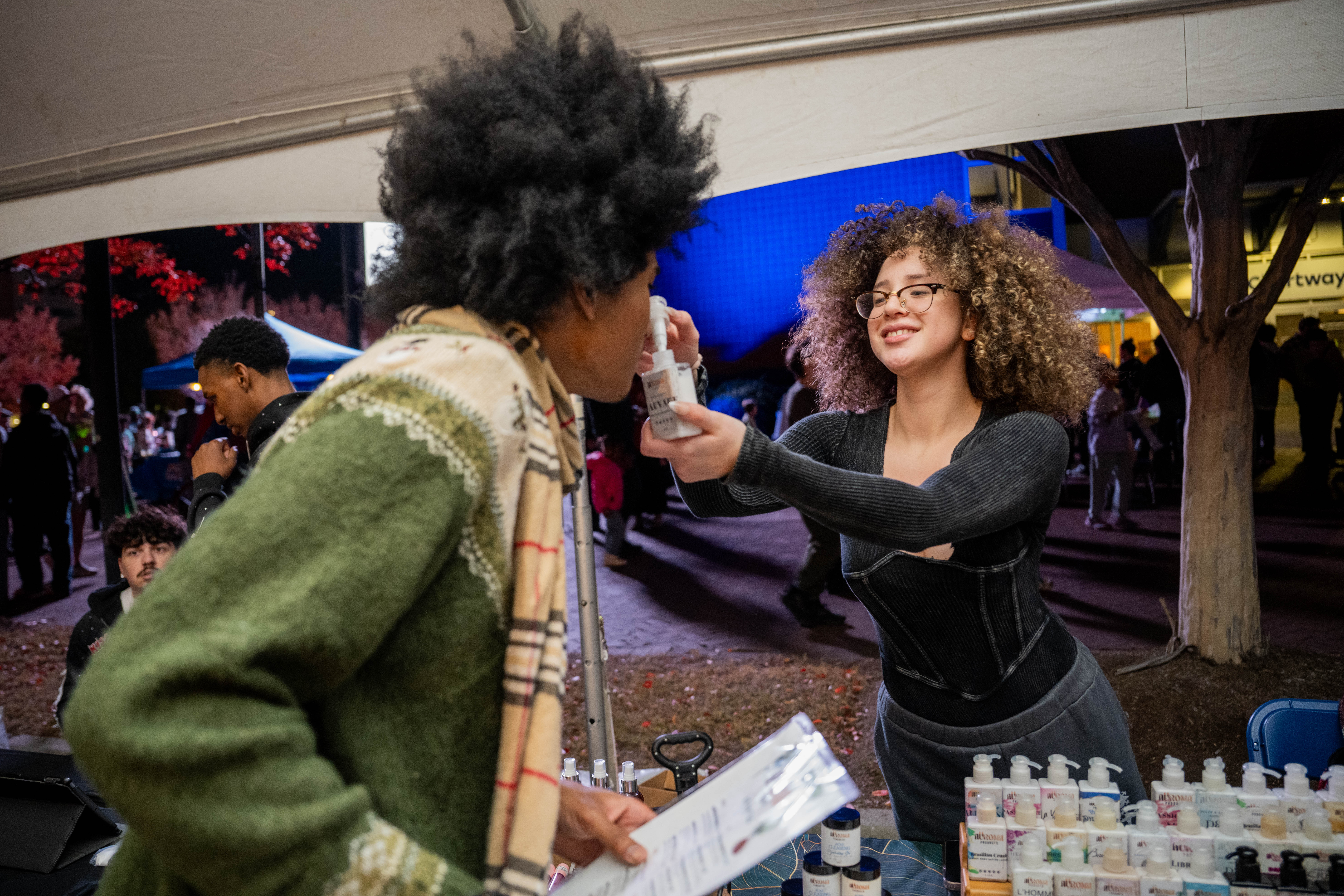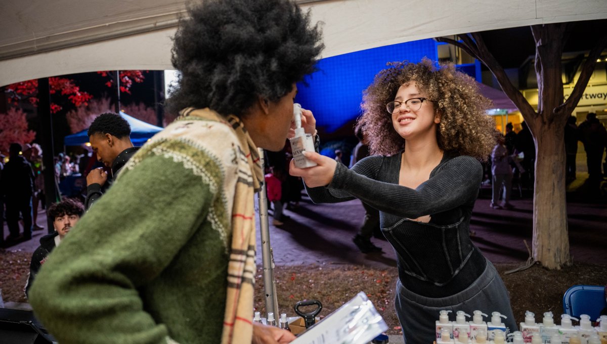 ODU student Jaileen De La Rosa, of Auroma Prodects, sells her essential oils during Bubble Fest. Photo Michael DiBari/ODU