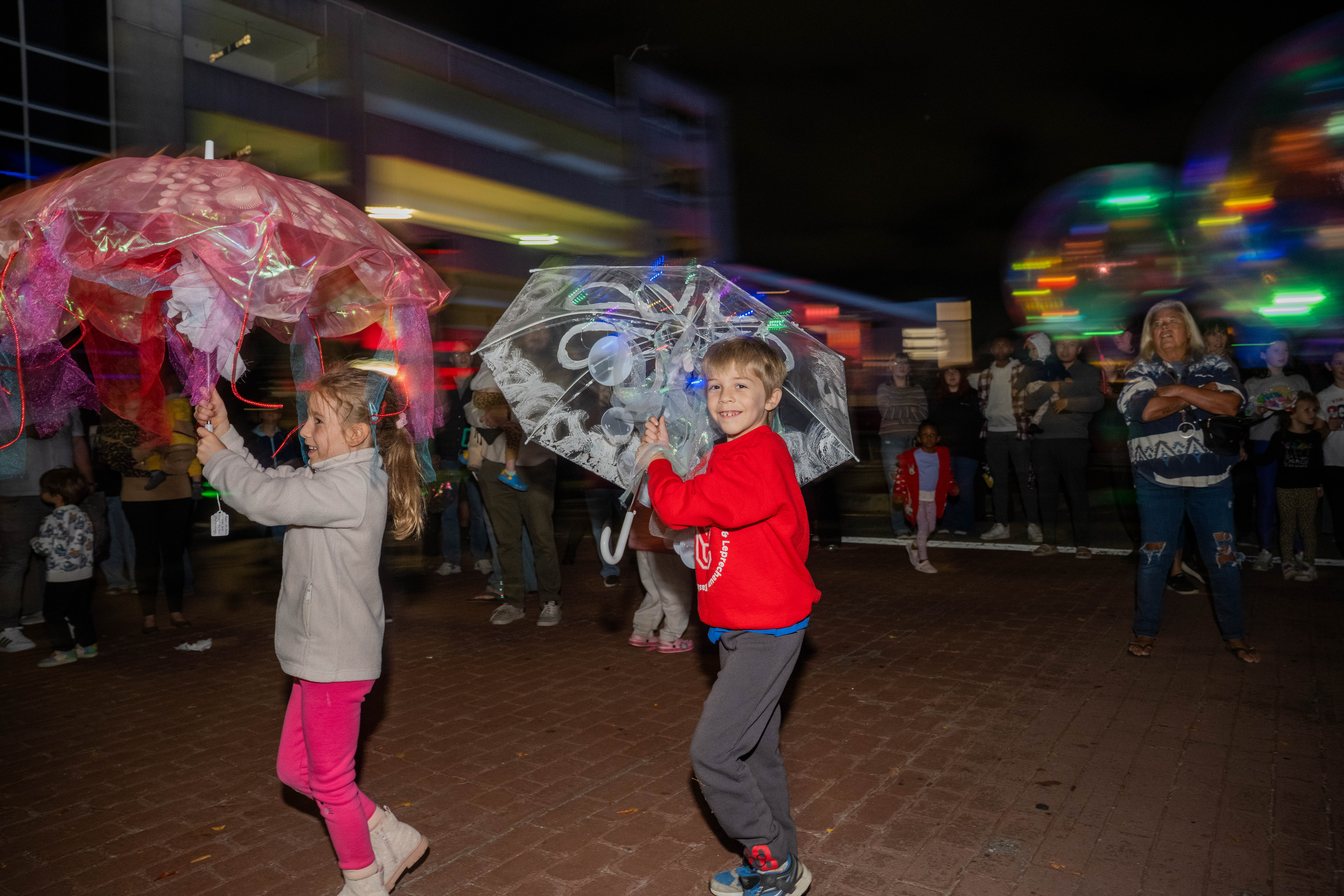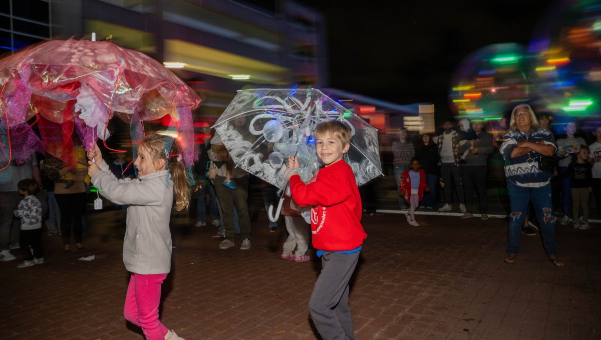 Children and parents do a jellyfish dance during Bubble Fest. Photo Michael DiBari/ODU