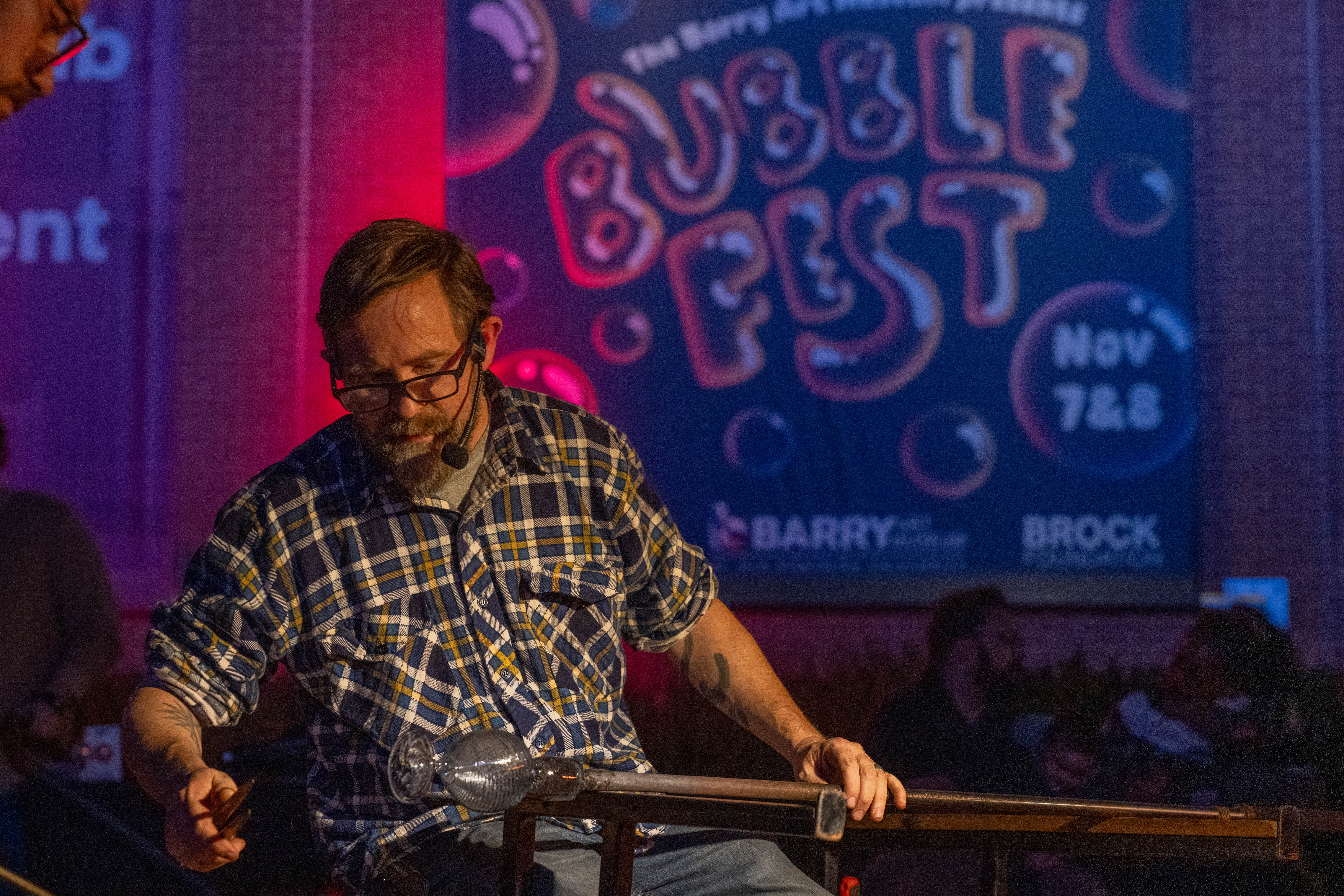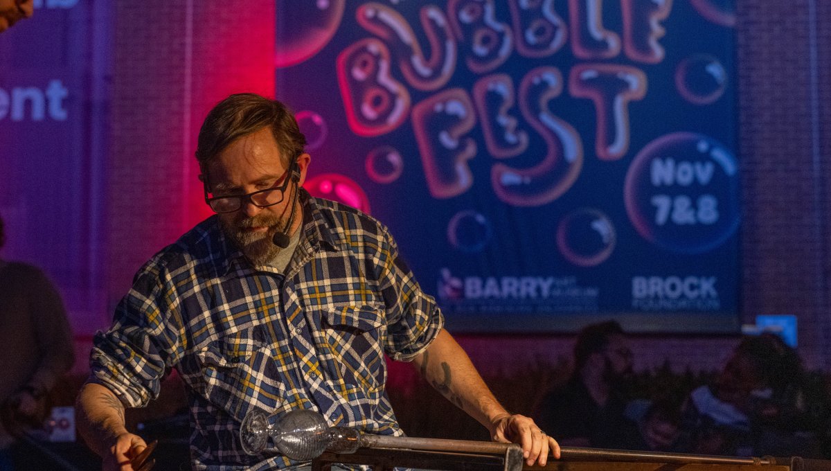 Glass artist Robin Rogers of the Chrysler Museum of Art demonstrates glassblowing outside the Barry Museum during Bubble Fest. Photo Michael DiBari/ODU