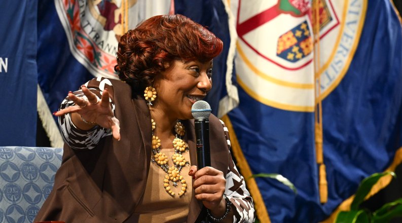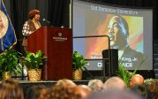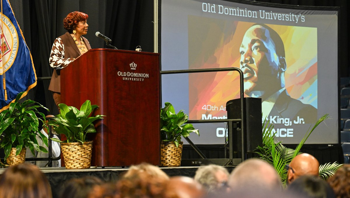 Dr. Bernice A. King, daughter of Martin Luther King Jr. and Coretta Scott King, delivered a keynote speech, answered questions and met with community members during ODU's 40th annual Martin Luther King Jr. Observance on Jan. 28. The University also presented its Hugo Owens Martin Luther King Jr. Memorial Award to Hampton Roads Community Foundation President and Chief Executive Officer Deborah DiCroce, Ph.D. Photos by Chuck Thomas/ODU