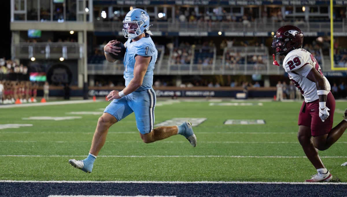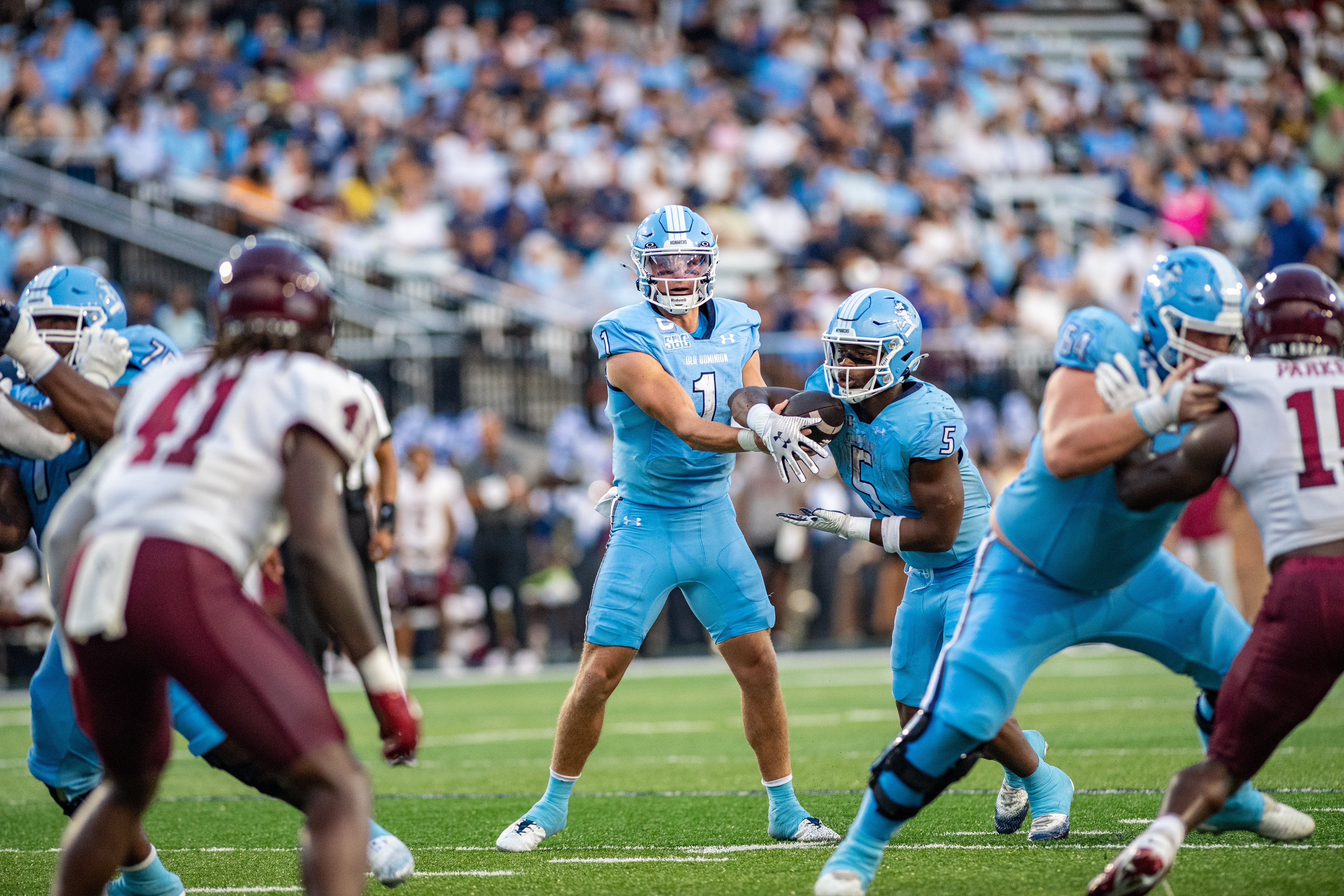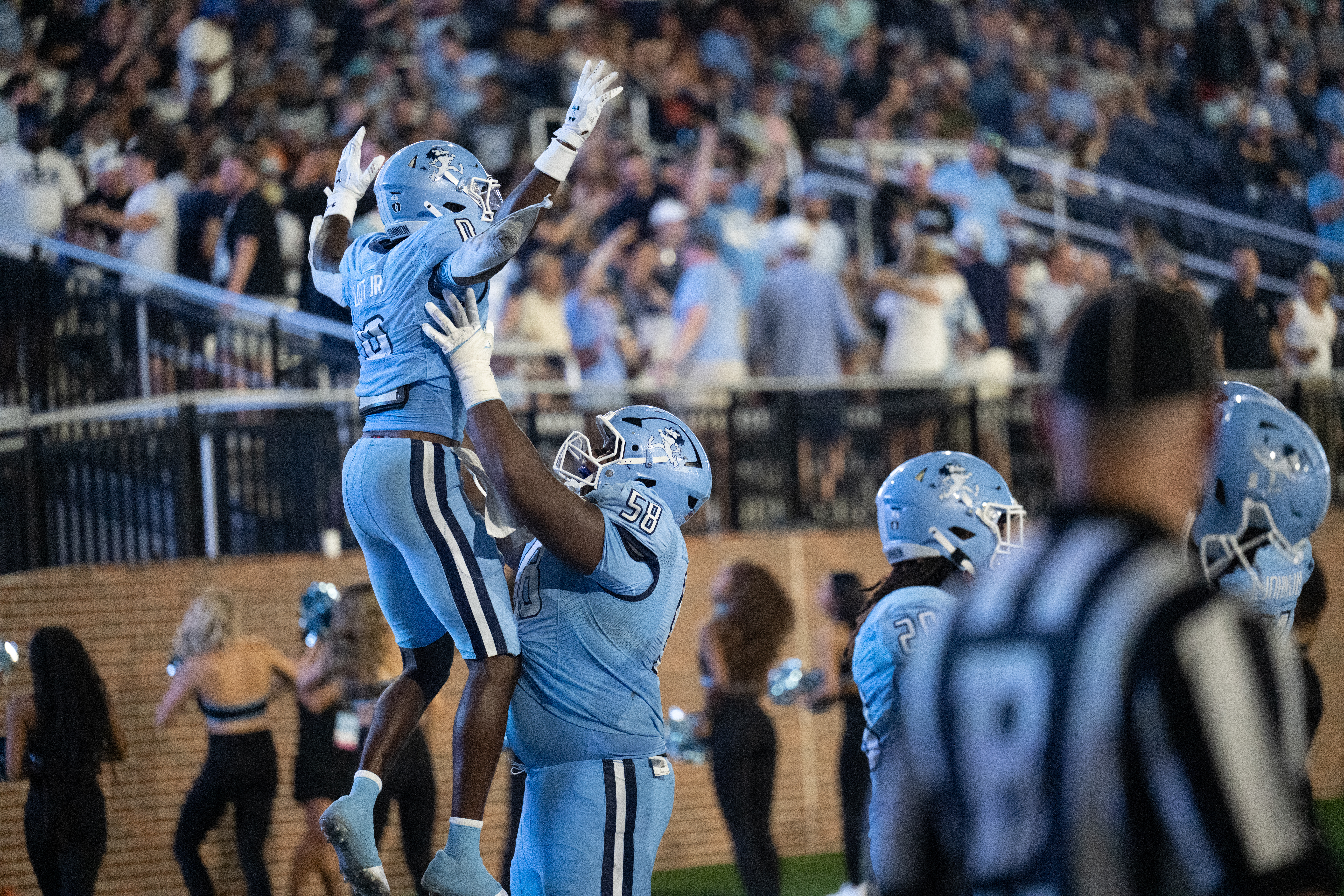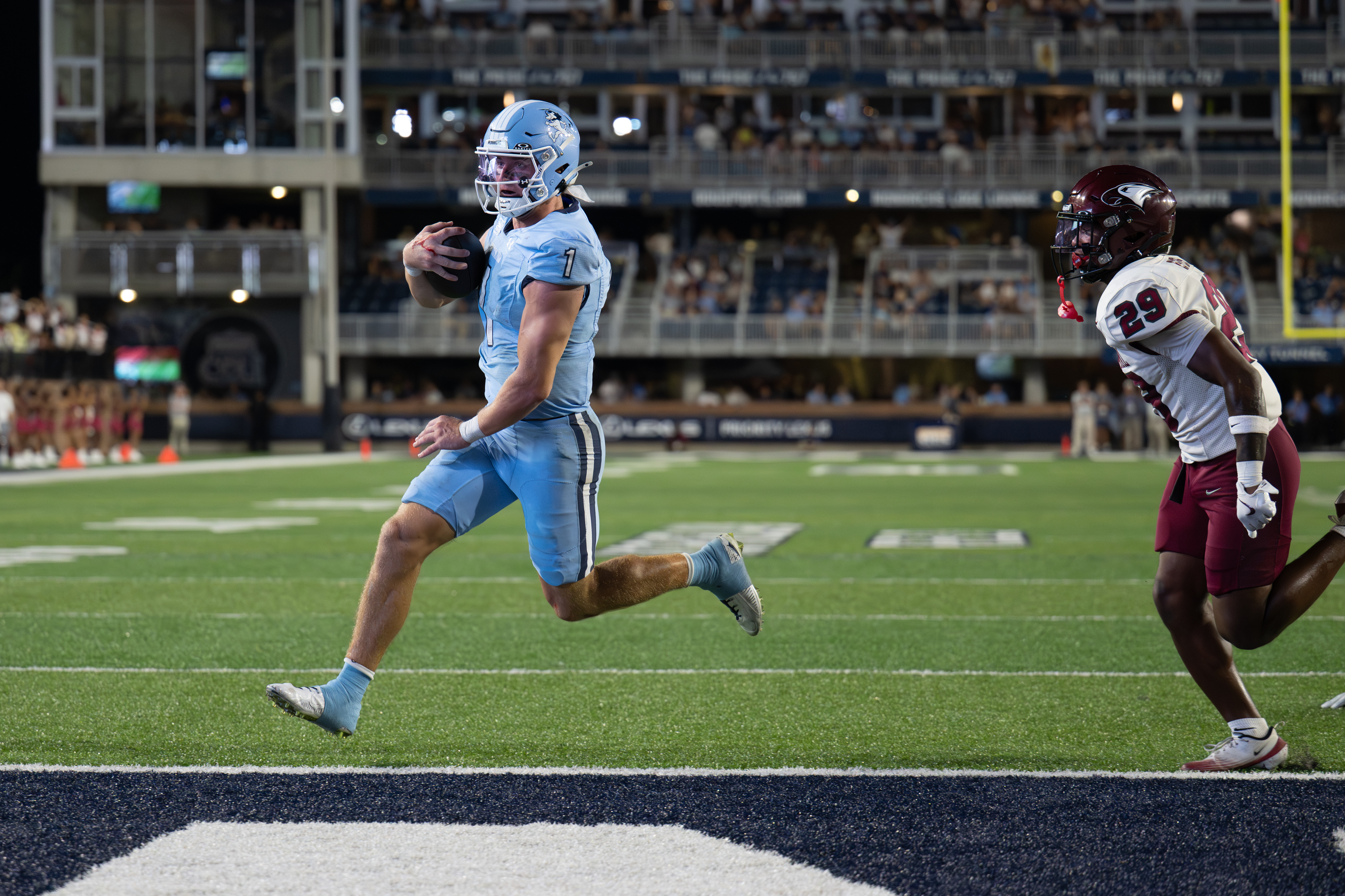 In an action-packed home opener at S.B. Ballard Stadium Saturday night, Old Dominion’s football team dominated North Carolina Central, 54-6. Quarterback Colton Joseph led the way, completing 19 of 24 passes for 257 yards and three touchdowns while adding 52 yards and a rushing touchdown on 11 carries. The Monarchs will face the Virginia Tech Hokies this Saturday in Blacksburg. Photos by Chuck Thomas and Michael DiBari/ODU