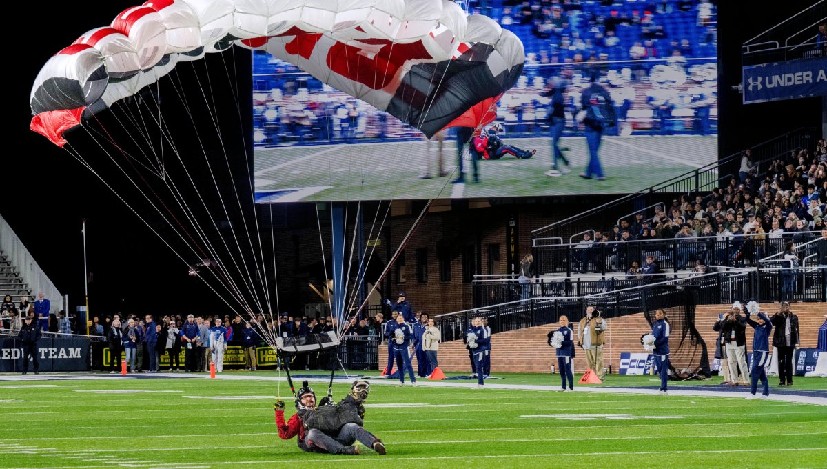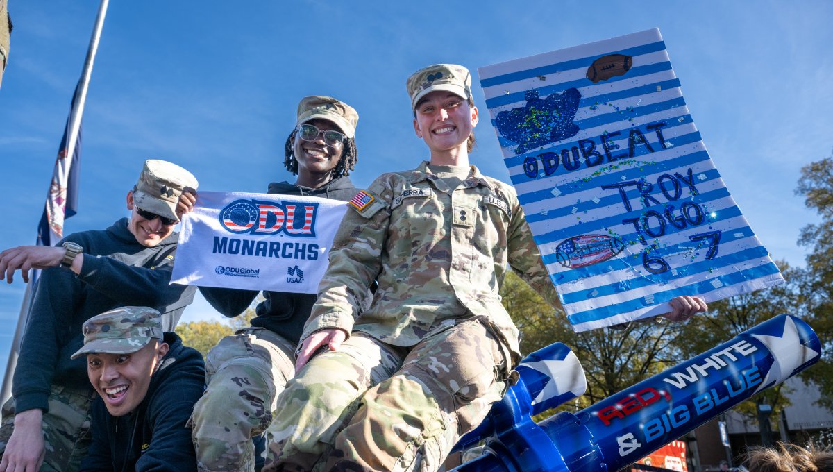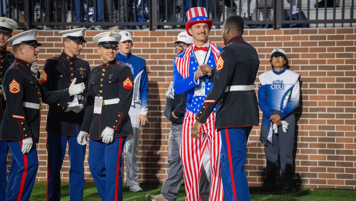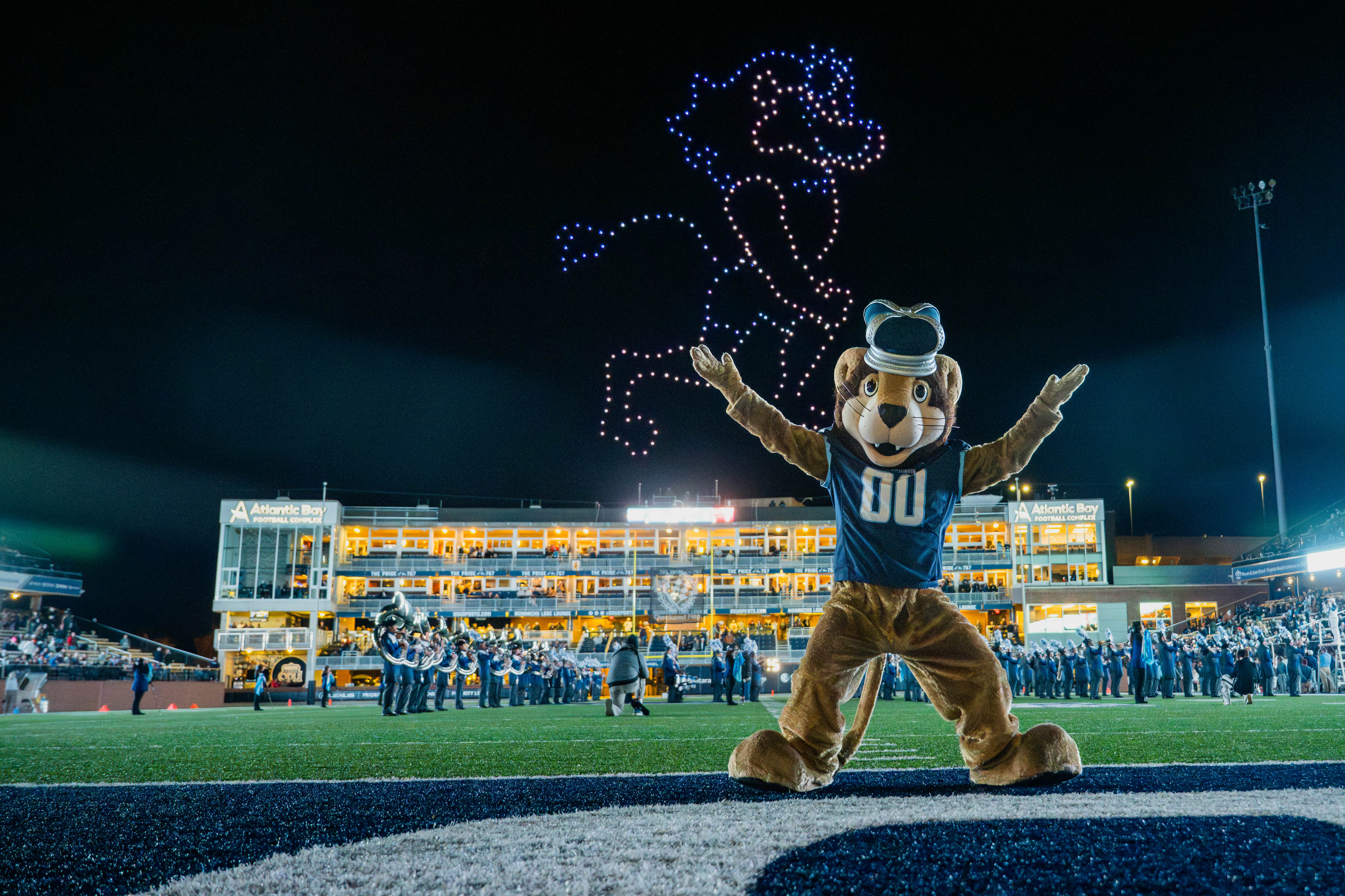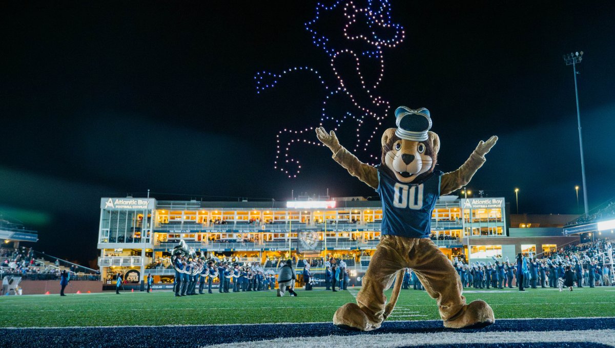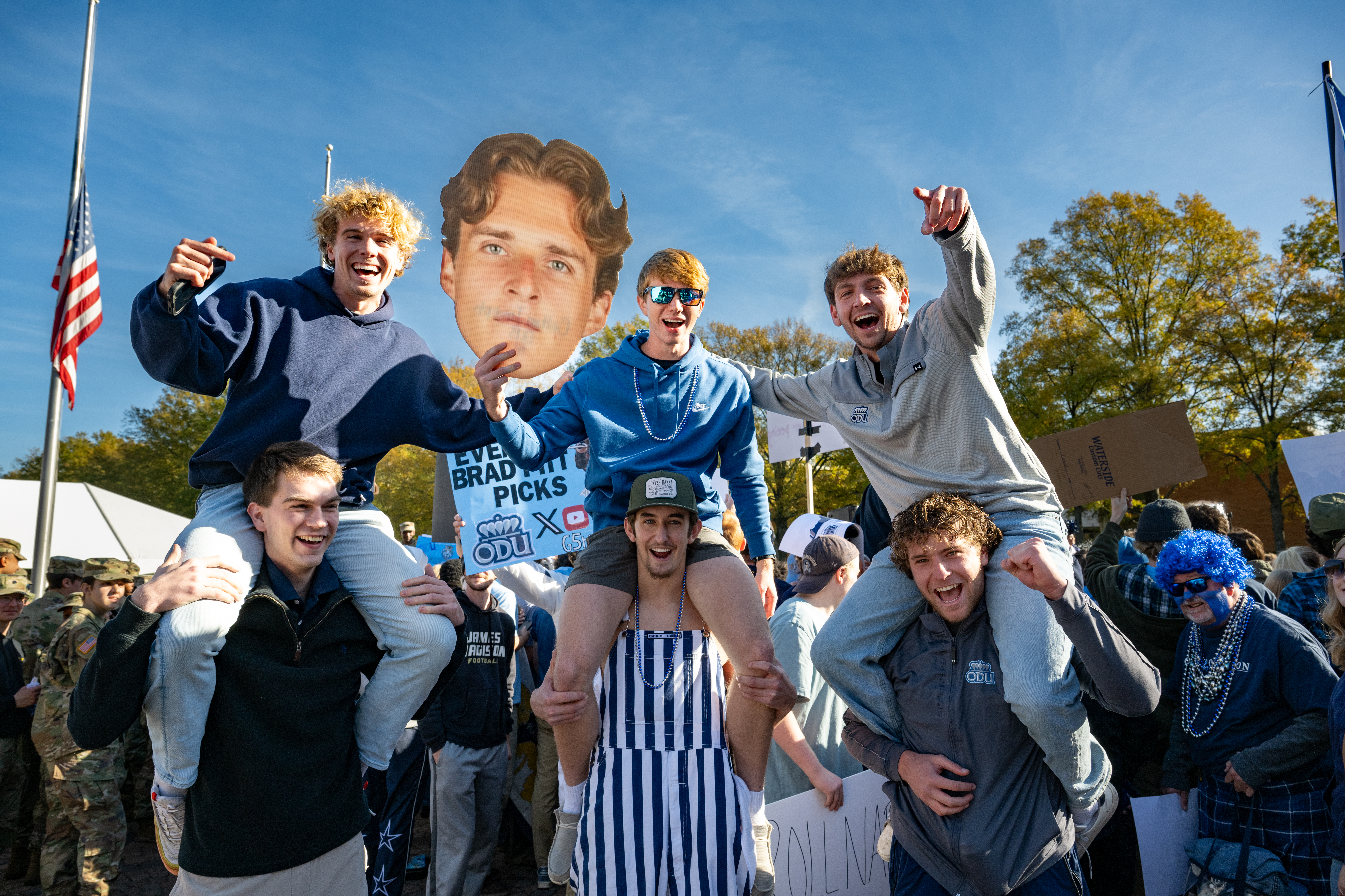Millions tuned in to watch Old Dominion University football on November 13 during a prime time, nationally televised game against Troy. The day began with a cake-eating contest, raffle giveaways and a live DJ, leading into ESPN SportsCenter Live on Kaufman Mall, where fans celebrated their school spirit. Gameday highlights included a parachute jump and a halftime drone show in honor of Military Appreciation Week. Photos Chuck Thomas and Michael Dibari/ODU