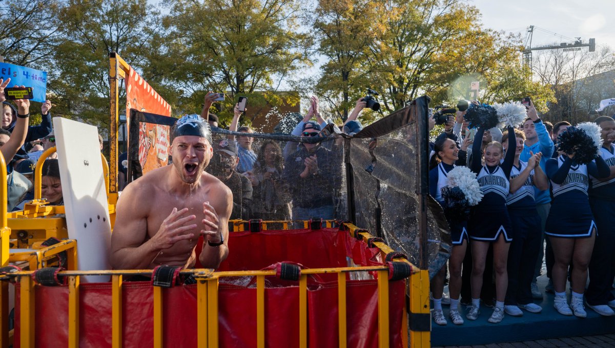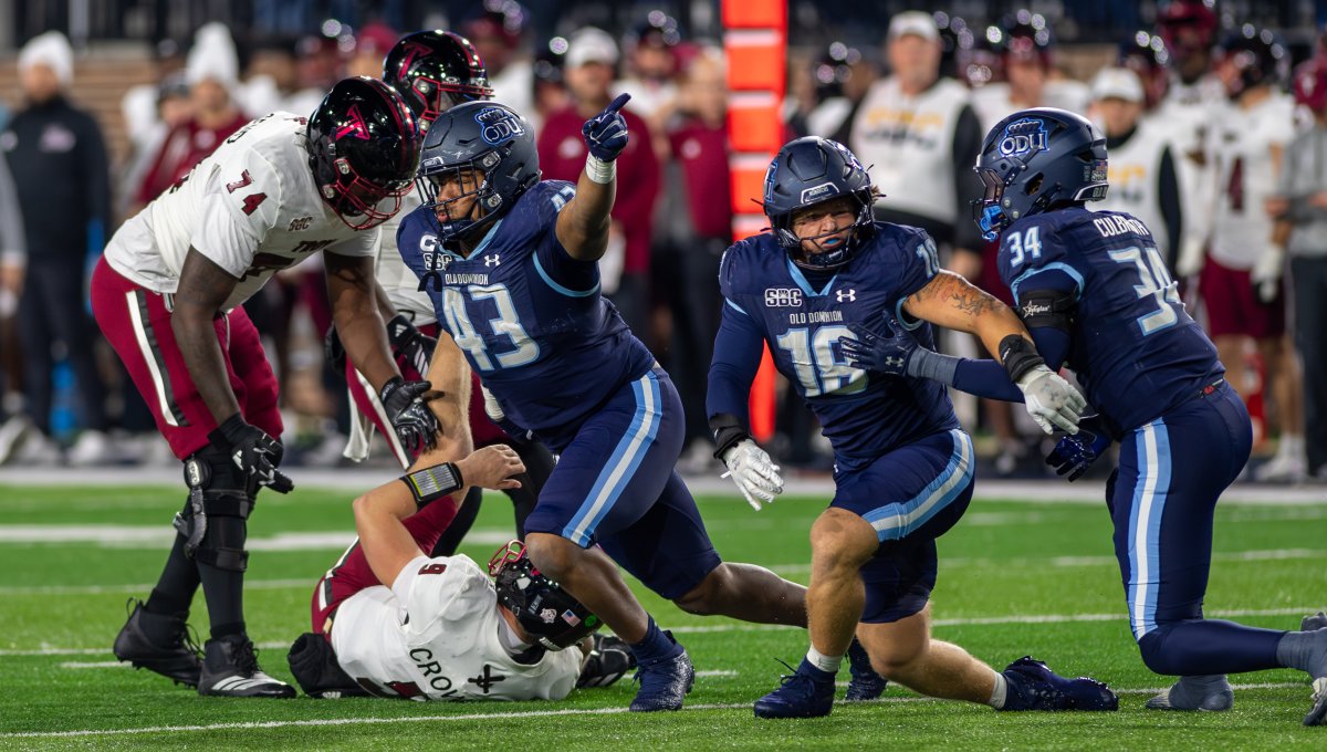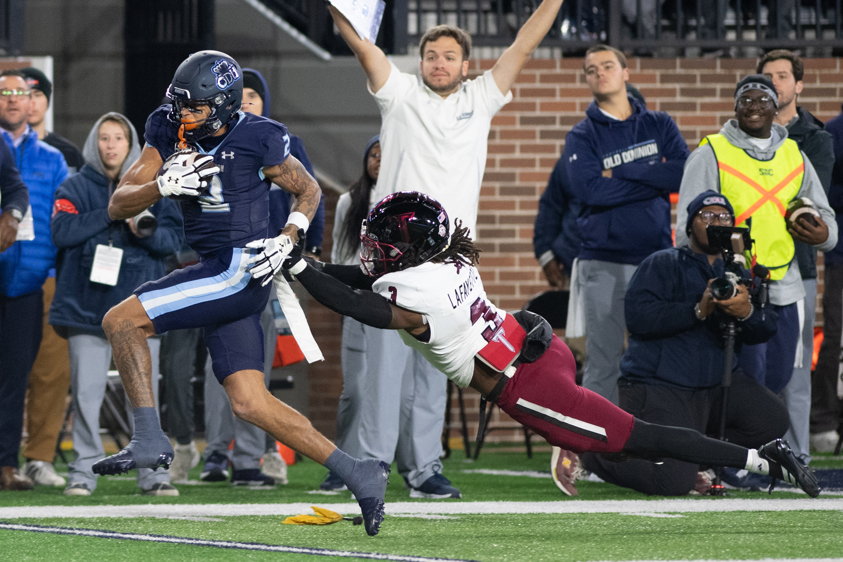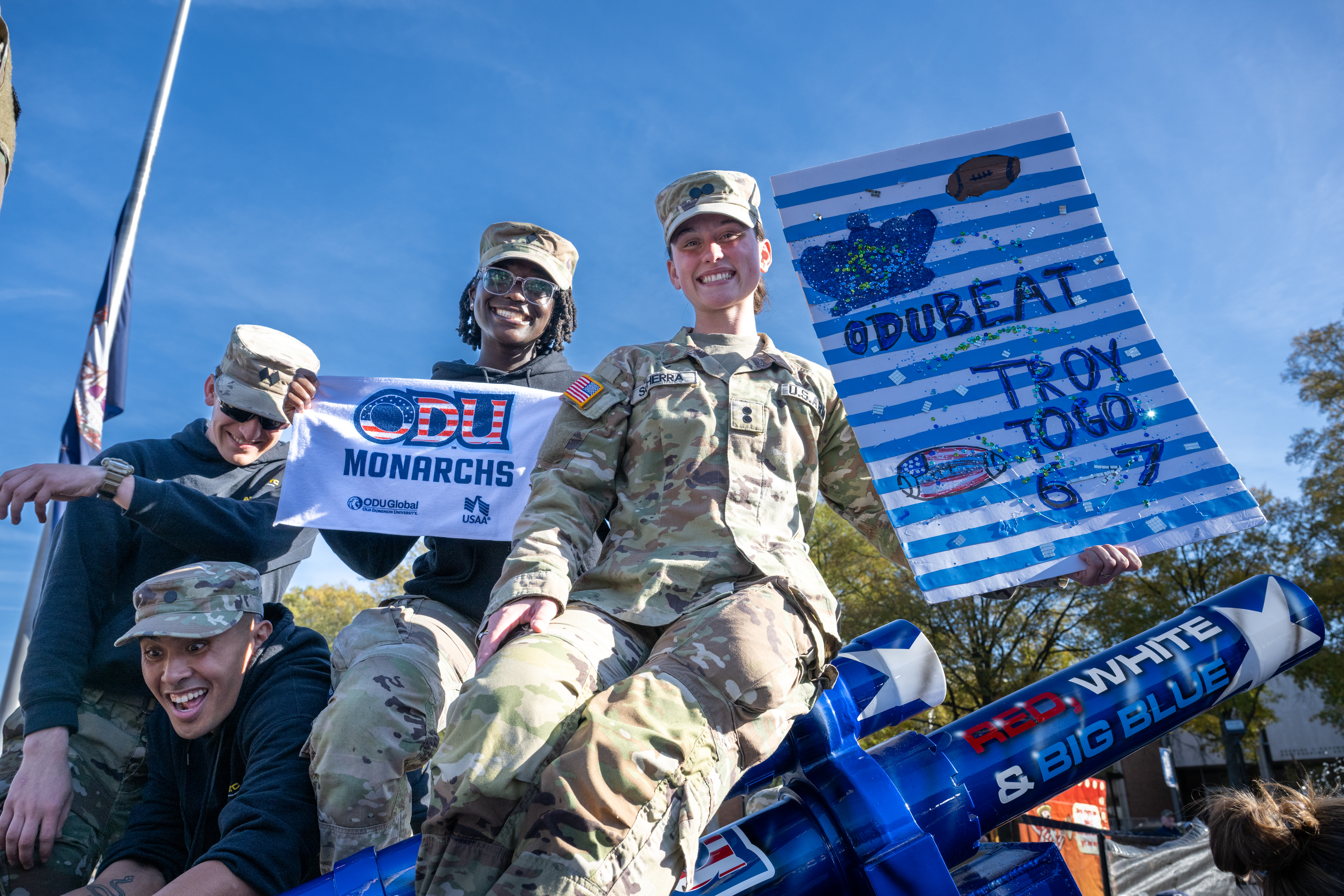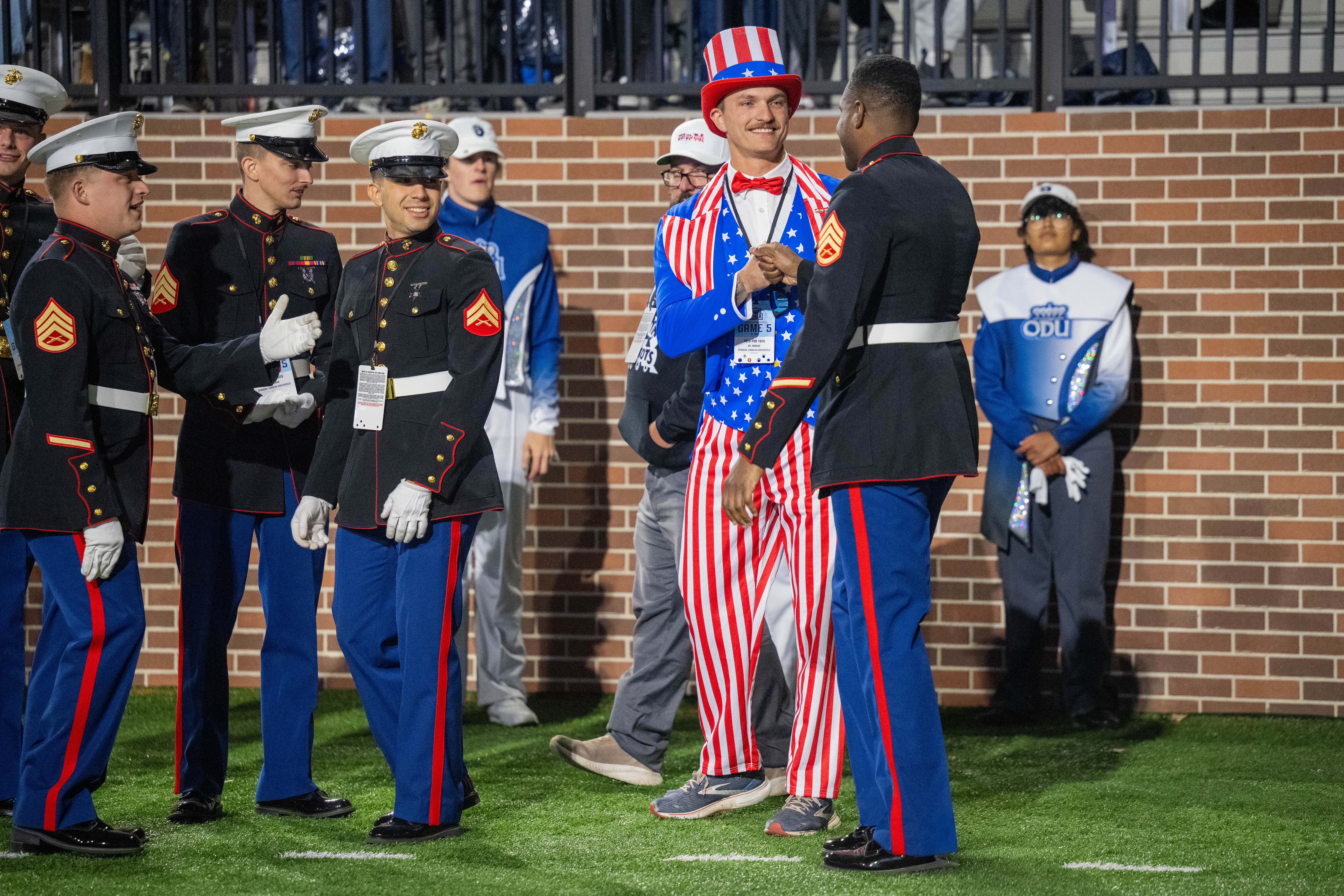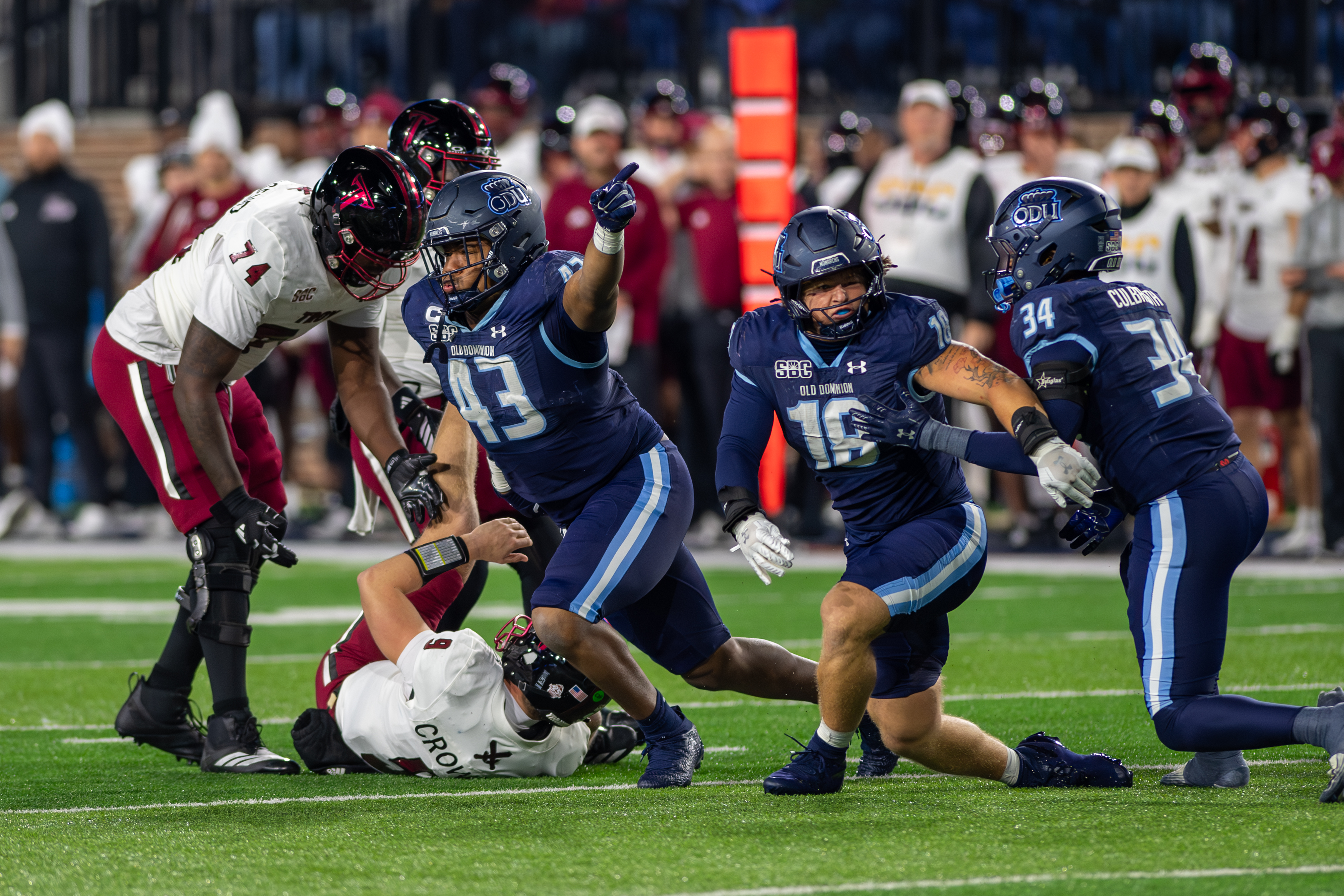 Millions tuned in to watch Old Dominion University football on November 13 during a prime time, nationally televised game against Troy. The day began with a cake-eating contest, raffle giveaways and a live DJ, leading into ESPN SportsCenter Live on Kaufman Mall, where fans celebrated their school spirit. Gameday highlights included a parachute jump and a halftime drone show in honor of Military Appreciation Week. Photos Chuck Thomas and Michael Dibari/ODU