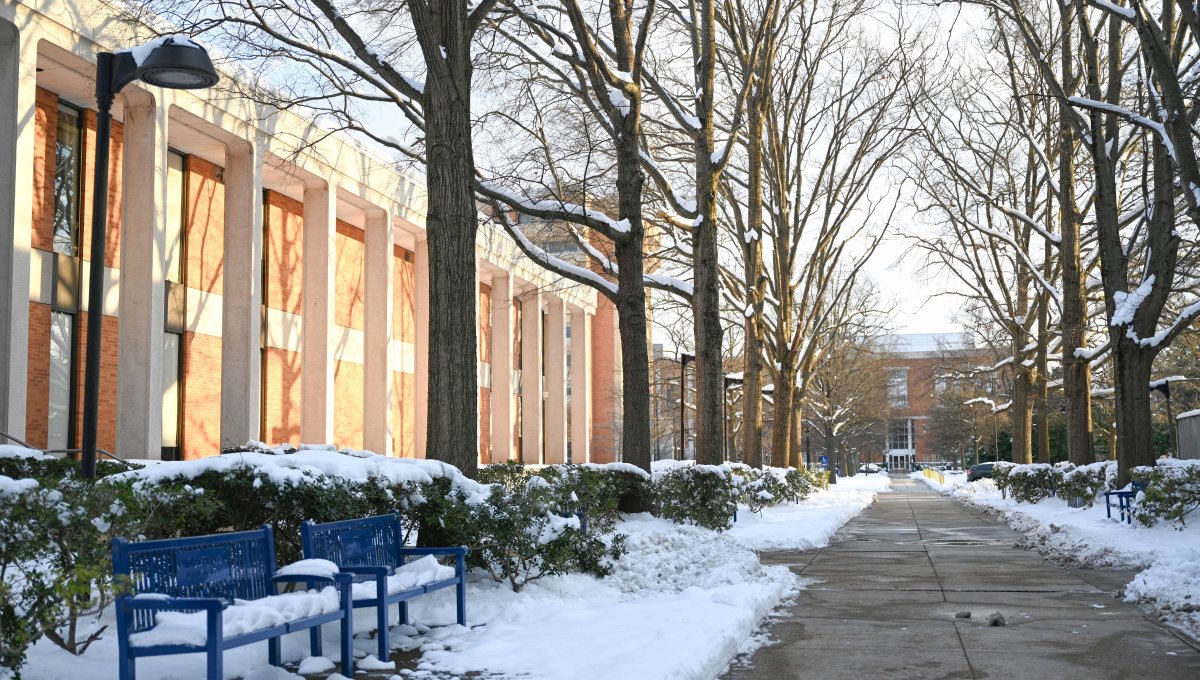 ODU is smothered in a blanket of white not seen in several years after a snowstorm cancels classes and creates a winter wonderland. Photo Morganne Lander/ODU
