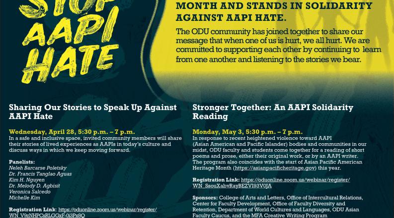 Old Dominion University is sponsoring two virtual events in the coming days to show solidarity with Asian American Pacific Islander (AAPI) community.