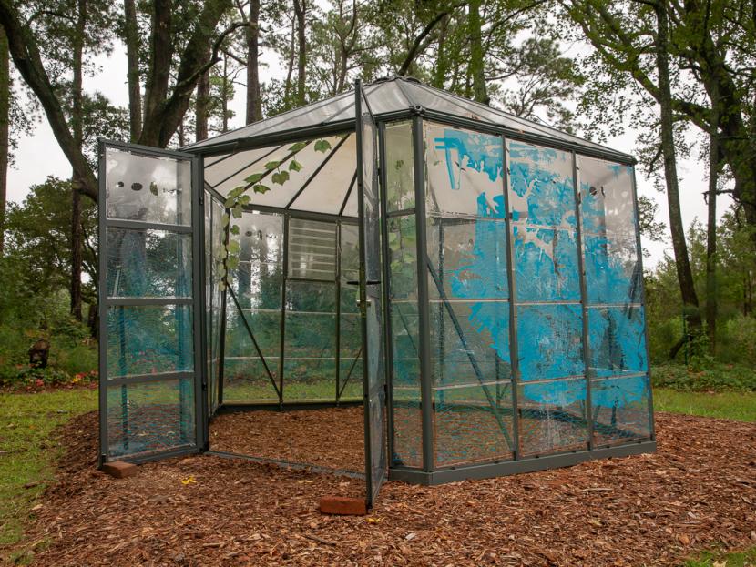 Community members submit text for paper grape leaves that are placed on a greenhouse structure at the Hermitage Museum and Gardens. (More)