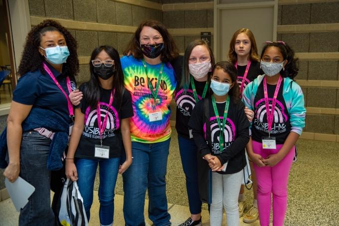 Students from Pembroke Elementary School wear T-shirts specially designed for the event celebrating all their future possibilities. Photo Chuck Thomas/ODU