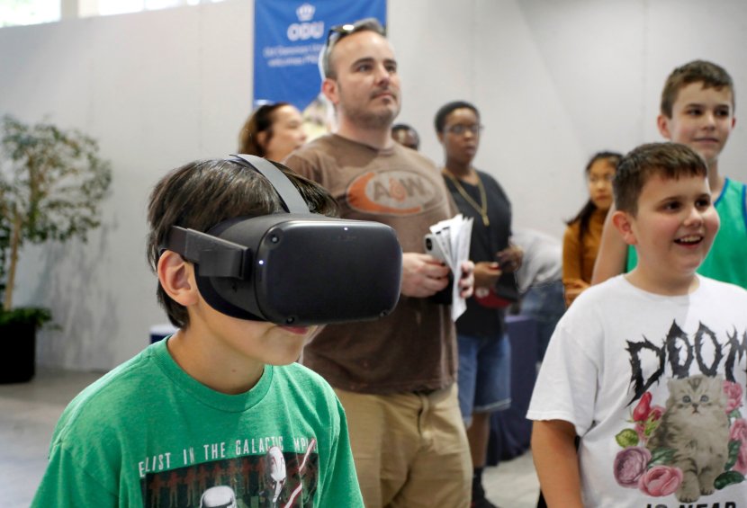 Peyton Moore, 9 years old, takes on the Apollo 11 virtual reality. Photo David B. Hollingsworth/ODU