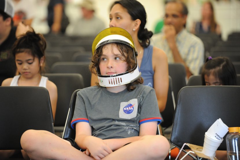 Ten-year-old Mikey Cleaver has his NASA helmet on and is ready to blast off. Photo Chuck Thomas/ODU