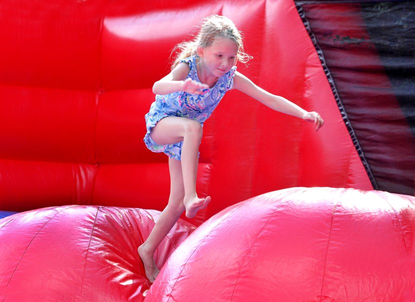 One small step leads to one big leap for 6-year-old Nora Donohue. Photo David B. Hollingsworth/ODU