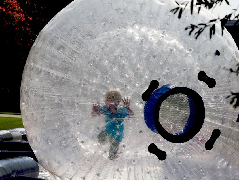 This little fellow successfully takes on a huge ball on Kaufman Mall. Photo David B. Hollingsworth/ODU