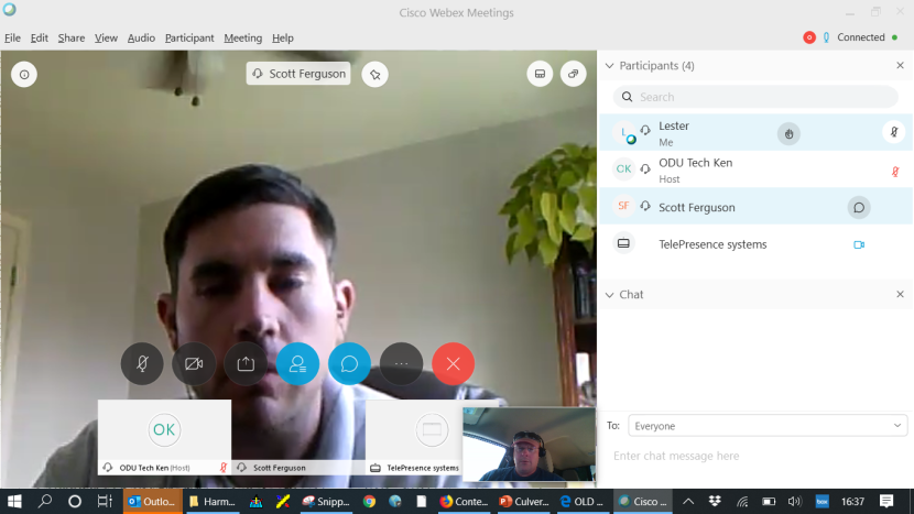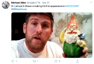 The ODU geography program Facebook page posted a #ODUAtHome image of a virtual faculty meeting showing everyone at their home computers. This was a common across social media channels.