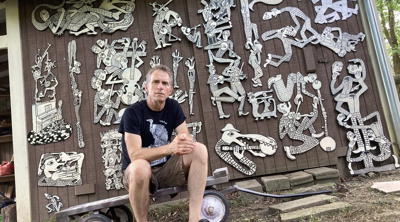 So, when he was sidelined from traveling and performing during the COVID-19 pandemic, he returned to making sculptures from salvaged wood, a medium he’d worked with starting in the early 1990s. It was inspired by time he’d spent at the open-air sculpture gardens of artist Howard Finster in Georgia.