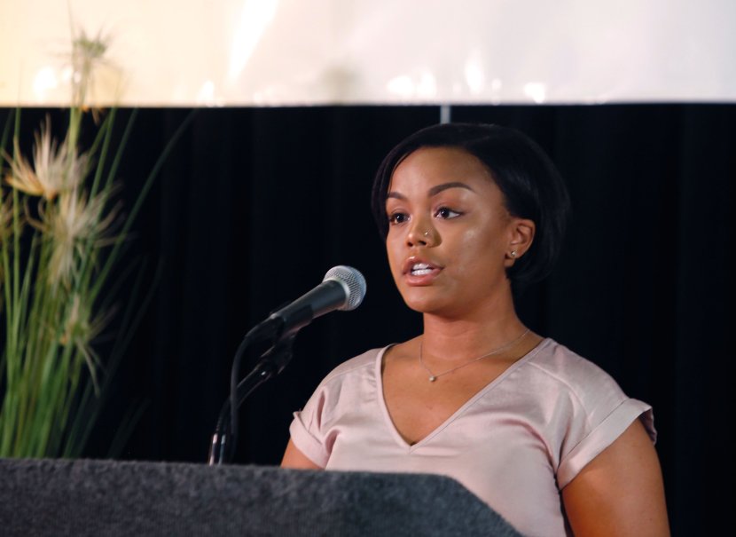 Dymon Bailey, director of legislative affairs and diversity for the Student Government Association, welcomed attendees for Old Dominion University Remembers. Photo David B. Hollingsworth/ODU