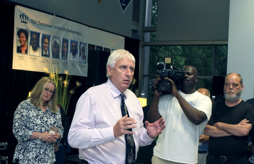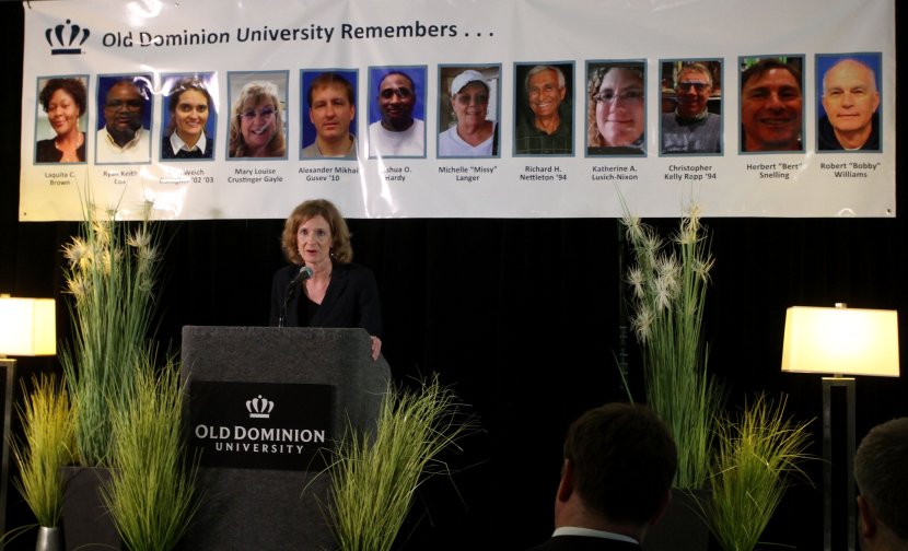 About 150 people heard reflections about the tragedy and expressions of support and encouragement from Old Dominion President John R. Broderick; Ellen Neufeldt, vice president for student engagement and enrollment services; Dymon Bailey, director of legislative affairs and diversity for the SGA; Virginia Beach Mayor Bobby Dyer; Patrick Gallagher, deputy chief of the Virginia Beach Police Department; Drew Lumpkin, regional director for U.S. Sen. Mark Warner; and Kevin Tremper, pastor of Crossroads Church in Norfolk.